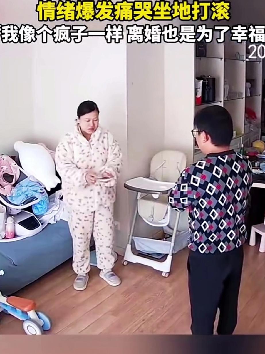 女子月子刚结束就想离婚,和老公发生争吵,情绪崩溃摔了手机,砸了孩子一辆小车子,气的痛哭坐地打滚,无论妻子怎么闹,丈夫并没有出言不逊,还紧紧抱住妻子来安慰她的情绪,好像丈夫并没招惹她,无缘无故的怒火就这么“着了”也许是因产后心情低落,身心还没恢复,看的出丈夫已经很包容她了,在紧抱她的那一刻,是最好的答案,告诉妻子“有我别怕” 在气头上难勉有情绪崩溃的时候,期待女子早日从困惑中走出来,丈夫的容忍和理解足以让婚姻再继续下去!