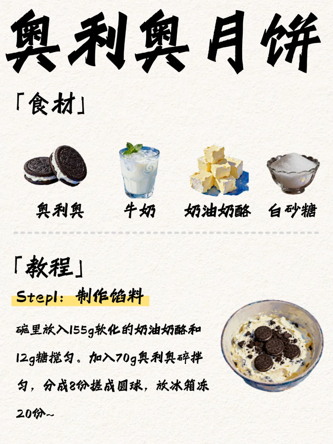 🙋姐妹们!我发现一款有手就会的奥利奥月饼配方🥮不用烤箱!不用开火!搅一搅就能成功! 口感冰凉绵密像冰淇淋🍦真的绝了快去试试!!