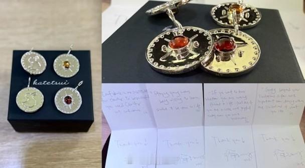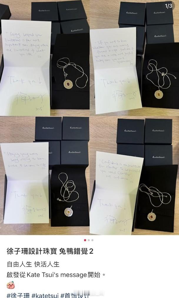 【On.cc】徐子珊投資珠寶生意百萬名利雙收 為粉絲親撰手寫信極窩心前港姐冠軍徐子珊多年來備受力捧,除了拍劇及唱歌外,更在電影《跟蹤》擔任女主角與梁家輝和任達華合作,更奪得金像獎「最佳新演員」獎。不過2019年宣布退出娛樂圈後,移居歐洲生活及進修。近日有網民上載徐子珊設計珠寶,並隨函附上親筆手寫信,令粉絲大感窩心。從相中可見,徐子珊在多張卡上寫了不同的鼓勵字句,首飾盒亦包裝精美,十分用心。曾被無綫力捧的「當家五大花旦」之一徐子珊早已「升呢」為珠寶設計師和珠寶網店老闆娘,手握過百萬生意,她親自設計了好幾十款珠寶首飾,價錢由一萬至幾十萬不等,在網上出售,令她蛻變成名利雙收的知性強人。子珊依家轉做珠生意。之前法國被捕獲。為粉絲親撰信箋。好窩心呀!