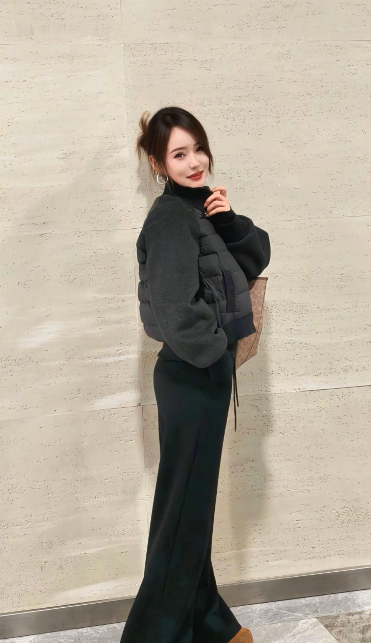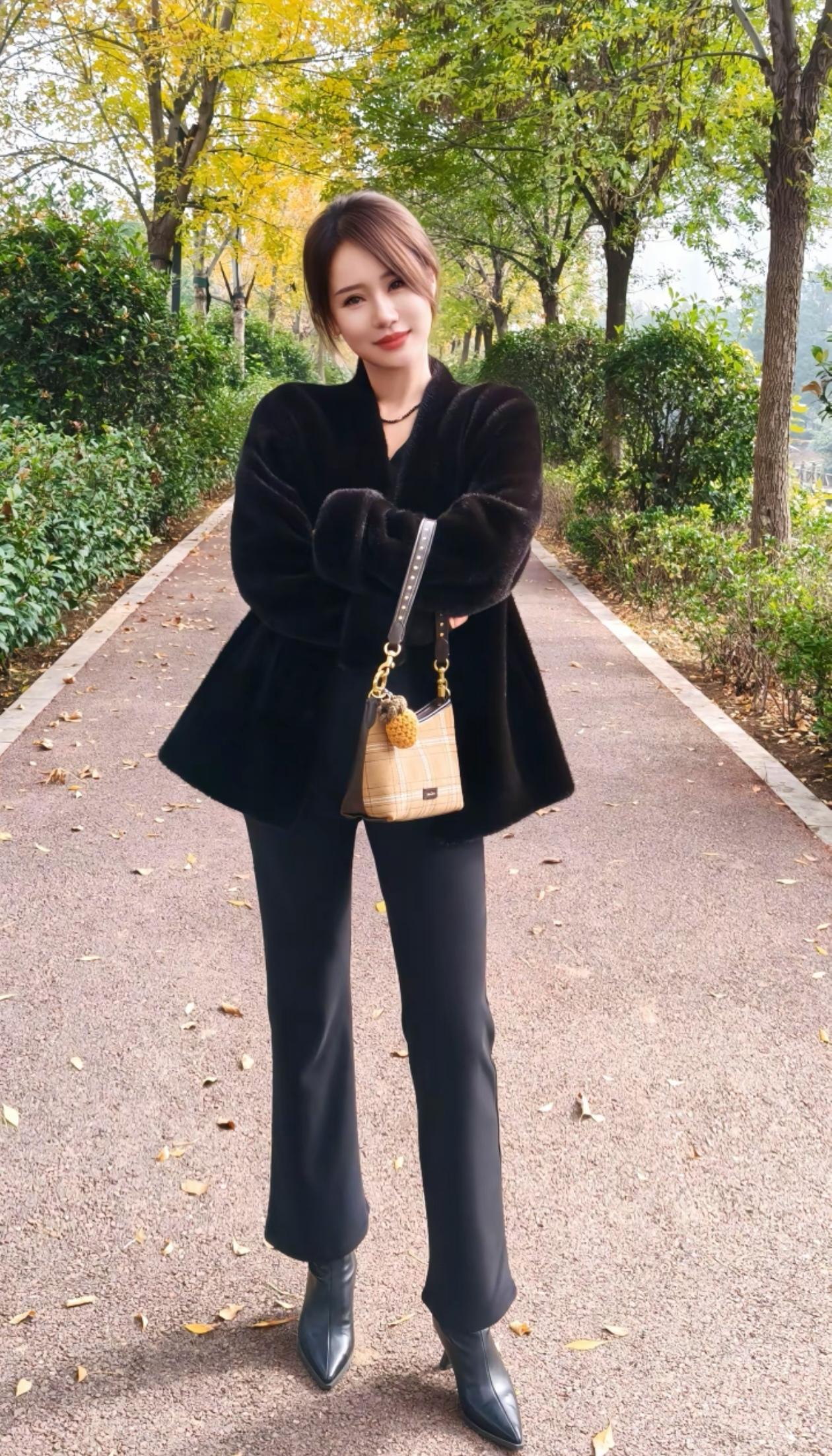 黑色皮衣搭配黑色丝袜,帅气又时尚!