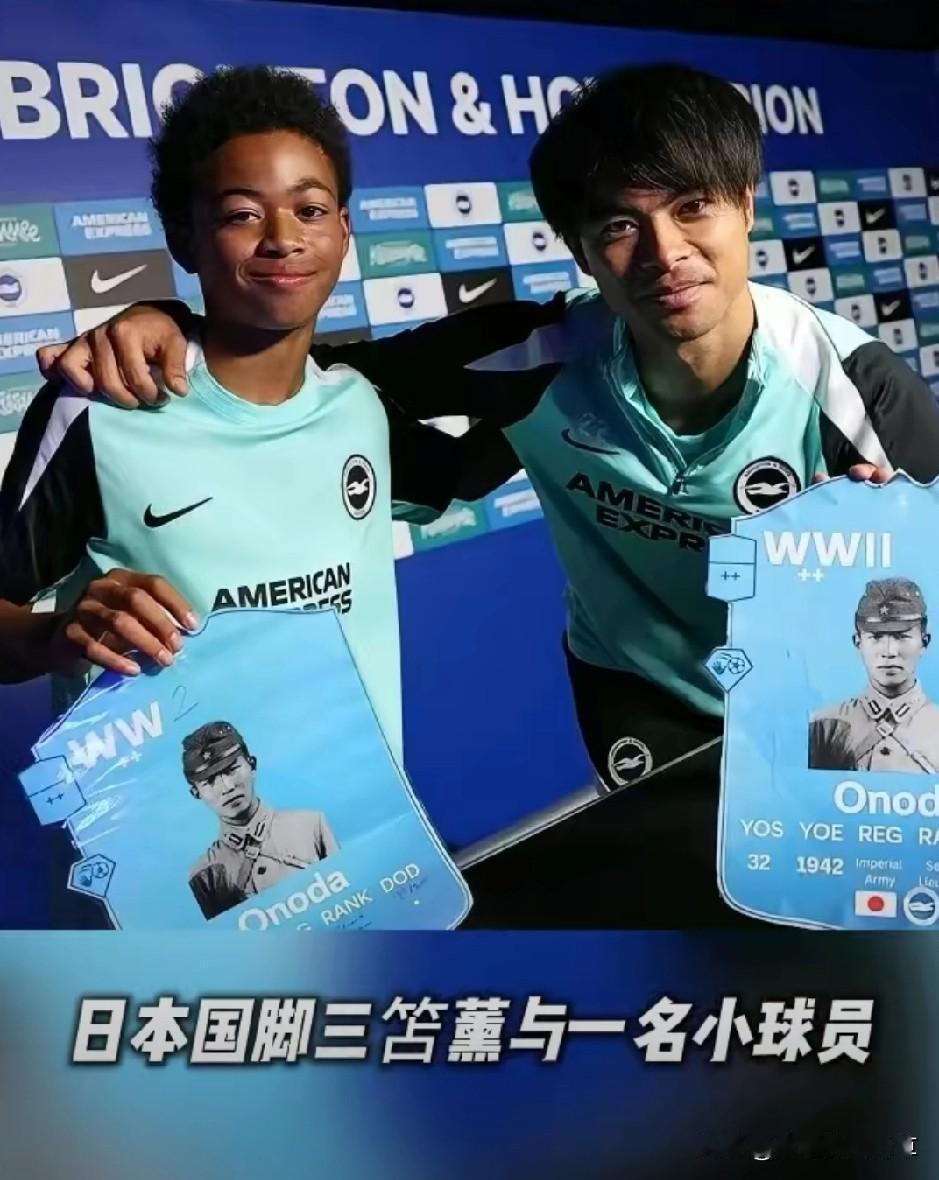 日本国脚合影战犯卡片事件,绝非偶然。 据报道,日本国脚三笘薰在活动中与小球员共同手持印有二战战犯小野田宽郎形象的卡片合影,引发广泛争议。 小野田宽郎在二战期间及战后潜伏菲律宾的近30年间,杀害了约30名无辜平民,累计造成包括士兵、警察在内的130余名菲律宾人死伤,战后长期拒绝投降,1974年返回日本后竟被部分人追捧,这样的战犯被当作榜样,绝非巧合所能解释。 部分日本右翼势力至今仍不承认侵略罪行,频频试图歪曲历史、翻历史旧案,还刻意向青少年灌输错误思想,长此以往,不少年轻人的历史认知逐渐出现偏差。三笘薰与小球员举着战犯卡片微笑合影的行为,正是这种错误导向下的产物。 不彻底肃清军国主义余毒,不真诚正视历史罪行,反而放任错误思想蔓延,这样的日本,终究难以获得亚洲受害国的谅解,更遑论让地区人民安心待之?