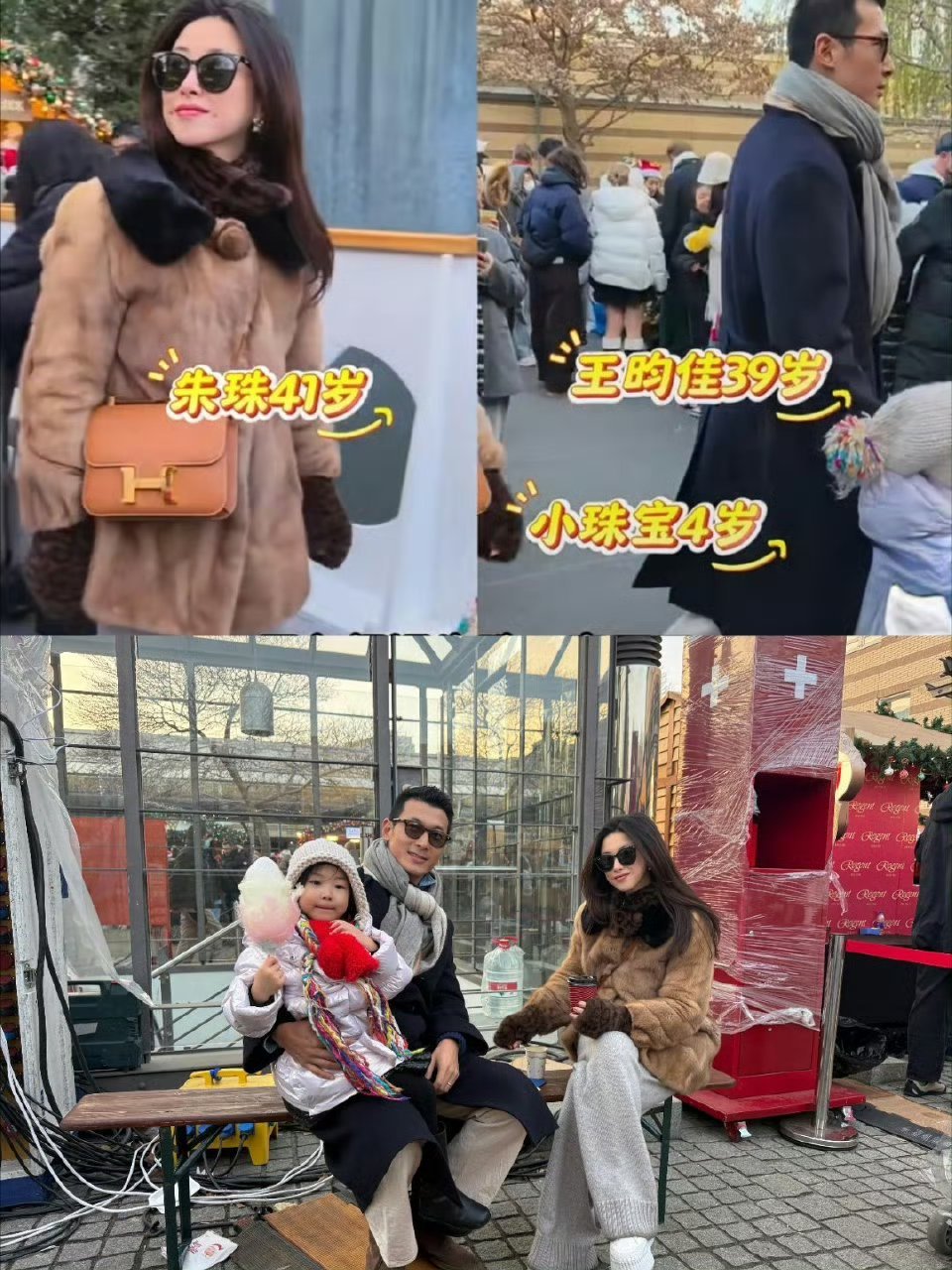 41岁朱珠和老公女儿一起去逛德国大使馆的圣诞集市,他们一家人打扮得光鲜亮丽,好像
