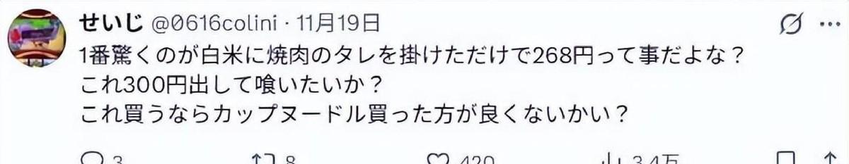 便利店卖酱汁拌饭,日本网友却绷不住了:这价格,日本经济完了? 别做梦了!罗森100竟然出“烤肉酱汁拌饭”——只有米饭和酱汁! 一份含税268日元,约合12元人民币。 看图只有白米里浇了点酱。没有肉。没有菜。 日本网友炸锅了。有人说这是“经济衰退的象征”。有人以为只要100日元,查账一看立马崩溃。 还有人尝过说不好吃。真正好吃的是米饭泡在肉汁里,不是被浇上一瓢酱。 罗森的说法是给喜欢“自由搭配”的人准备的,推荐配串烧、炸鸡或煎蛋。 但你270日元买个半成品?这操作很拉胯。要么便宜到让你白嫖式买单,要么就配料到位别糊弄人。 你愿意花这个钱买“空饭”吗?来说说你的看法。 素材来自网络,侵权联系删除。