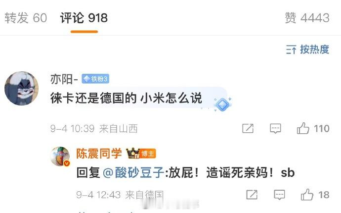 已经不止一次看到陈震对线网友了,父母健全的人怎么那么喜欢以妈为单位呢?