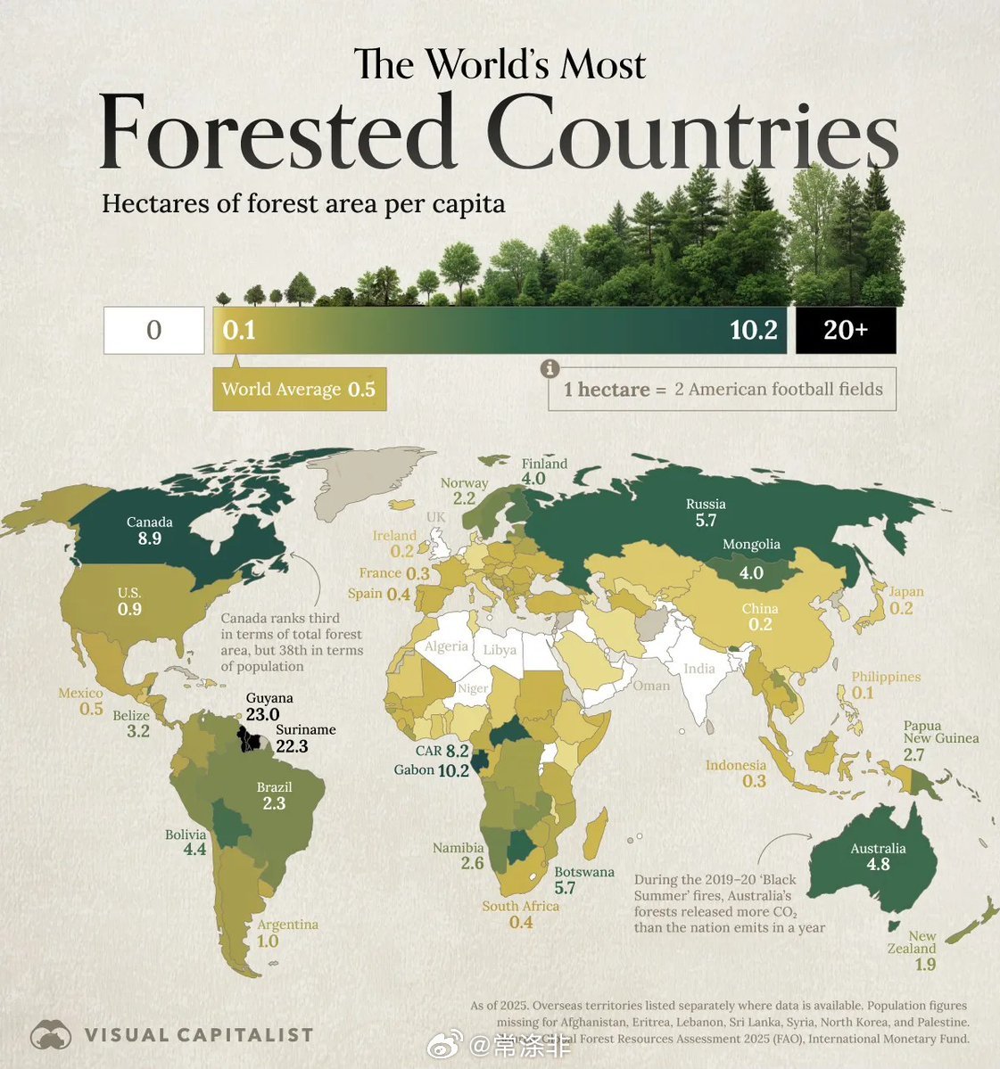 🌲世界上人均森林覆盖率最高的国家数据可视化常涤非超话