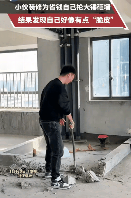 浙江温州,为了省2600元的砸墙费,年轻小伙决定自己砸。没想到,小伙子抡起大锤砸了一个多小时,直接进医院了。 小伙叫阿凯,刚买完房,装修预算紧张。装修队报出砸墙价格时,他当场拒绝,说自己能做。早上7点,他拿着25元买的大锤进了毛坯房,心里只想着省下这笔钱。 第一锤砸下,墙皮掉了点灰,他觉得这事简单。砸到第100锤,胳膊开始发酸,他甩了甩继续砸——脑子里算着省下来的钱能给孩子买个新书包。再一锤下去,他突然胸口发闷,眼前发黑,大锤落地,人顺着墙滑到地上。 家人赶到医院时,阿凯坐在急诊长椅上,手里攥着气胸的片子。医生说,他是用力过猛引发气胸,再晚来就要插管治疗。 本地装修师傅说,砸墙要找受力点,还要避开承重墙,专业工人10分钟能完成的活,外行砸半天都砸不明白,还容易受伤。 阿凯后来算账:医药费花了1800元,误工3天扣了2000元,最后还是花2600元找装修队砸墙——比直接花钱多花3200元。 近期,多地出现因“自己动手省装修费”受伤的情况。有人觉得专业服务贵,却忽略了自己操作的风险,最终付出更高的成本。 钱可以再挣,健康出问题,不是花钱就能立刻恢复的。装修时,专业的事交给专业人做,别因小失大。 各位读者你们怎么看?欢迎在评论区讨论。