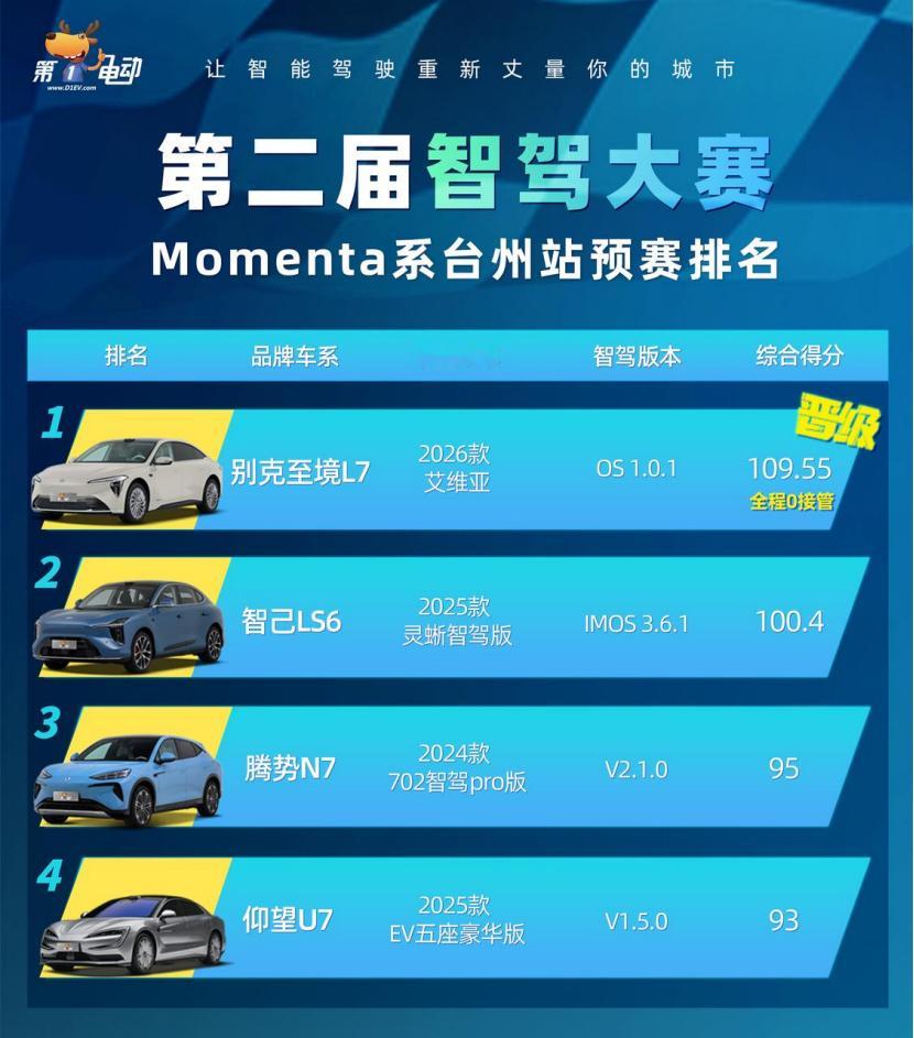 没想到吧,竟然还有中国智驾大赛这么一个民间测试,而且已经办到第二届了,昨天第二站台州站冠军是星纪元ES。这次参赛的车型有10款,我对用了Momenta驾驶辅助方案的至境L7比较关注,因为第一站宁波站它是冠军,本来想看看第二站能不能蝉联来着,结果第二站在排名上第九。我大概看了赛事的基本情况,有两个感受,一个是这种分高下的榜单,在赛制的专业性还有规则上还有优化的空间,比如导航途经点出现过错误问题,直播到一半还有车型断信号等这些不应该出现的问题。而且因为它打分是扣分制,在比赛过程中的一个场景是至境L7避让行人,等待行人离开再通过,这个决策逻辑无非就是奔着安全第一的原则,完全没毛病,但却被扣了分,这确实有待商榷。再一个就是智驾能力的高低,本质上无法在出行场景样本量有限的条件下结论,这个智驾路线虽然覆盖路况看着还算丰富,但里程也就35公里,一共也就6个大考点,路线时间也就90分左右。所以这个榜单成绩,只能代表台州站的场景下,这些车型的智驾能力,而且仅代表这一次,因为驾驶辅助本身就存在变量,同样的路况重新再比一次,这个榜单大概率也会发生变化。也就是说台州站这个榜单不代表这些车型智驾能力的最终排名。当然还有一点,智驾技术迭代很快,所以像智驾比赛出现成绩波动倒也不奇怪了。值得一提的是,别克官方好像还挺重视这个民间赛事,据说比赛结束工程师团队直接到达现场复盘复测之类的动作,也算是快速积累数据和经验,为后续的OTA升级做准备,说白了这次台州站反而能让至境L7以后更聪明,对用户来说倒也不错。哦对了,今天至境L7也要开启上市后的首轮OTA推送了,主要也是优化智能驾驶、智能辅助灯多项功能。其实结合之前宁波站的0接管的第一的成绩,至境L7的辅助驾驶还是有东西的,经历这次台州站,这也让我开始期待下一站至境L7的表现了。别克连夜复盘辅助驾驶大赛路线别克至境L7开启首轮OTA