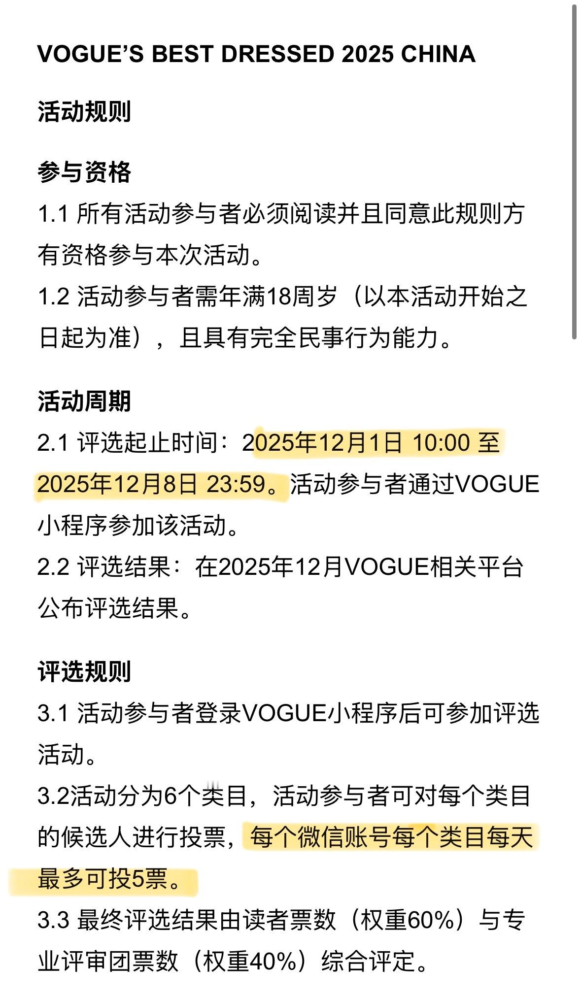 杨幂 vogue投票🗳️【最佳红毯着装女明星】1️⃣wx搜索🔍vogue小程序2️⃣找到“vogue‘s best dressed”3️⃣往下滑找到找到杨幂投票注意:投票时间12.1-12.8,每个wx号每个类目每天最多5票🎫!多手机耗可以切耗多投!幂目前排名第二,快来呀