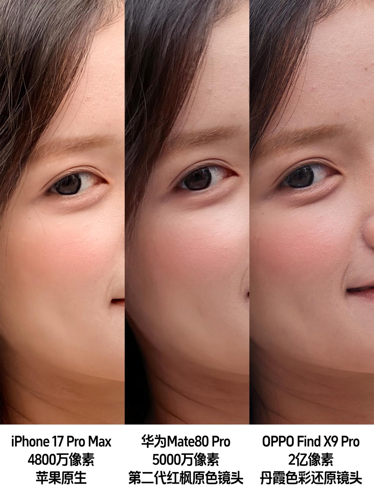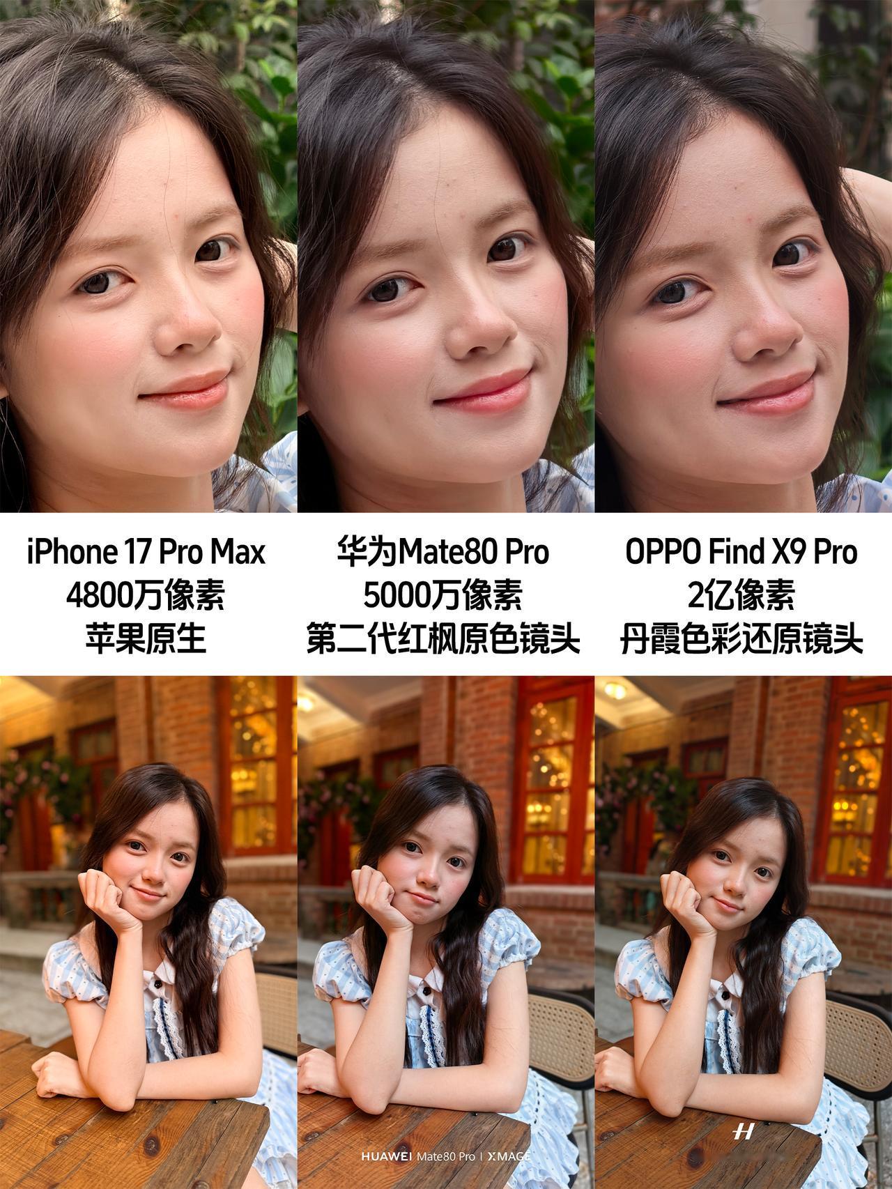 华为Mate80Pro实拍太好看了吧! 刚拿到华为Mate80 Pro就立马试了下,这拍照确实好看啊,尤其是色彩!有第二代红枫原色镜头真的不一样的! 都说大家喜欢苹果,是喜欢苹果的色彩真实。那么这次,我们就拿上iPhone 17 Pro Max,再加一个同样配备色彩还原镜头的OPPO Find X9 Pro来对比,大家觉得谁家拍照效果更好?🤔 这一组是长焦镜头拍的,色彩上一眼分为苹果原生阵营和安卓色彩还原阵营,看人脸肤色,再看绿叶的层次和红砖质感,苹果17 Pro Max有一层暖光效果;而华为Mate80 Pro的红枫原色镜头,以及OPPO Find X9 Pro的丹霞色彩还原镜头,能够真实还原肉眼所见。 苹果新一代iPhone17系列虽然拍照也有珠光美颜了,但对比华为OPPO这些国产品牌还是有提升空间啊,毕竟这两家都有色彩还原镜头这种“外挂”,大家更喜欢哪款机型拍的效果呢?