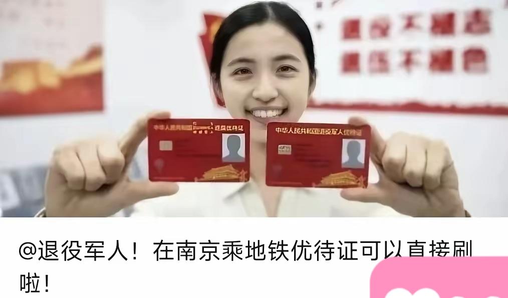 谁懂啊!南京这波操作直接封神,给全国退伍军人送来了“苏式硬核福利”! 从12月1日起,全国退伍军人拿着《退伍军人优待证》,就能直接刷闸机免费坐南京地铁,不用再排队走人工绿色通道,省时又省心,这便利度直接拉满,关键这还是全国首创的举措,必须狠狠点赞! 之前虽说有优待,但人工核验又费时间又耗人力,退伍老兵们出门还得特意留足等候时间,总觉得少了点顺畅感。现在闸机直接适配优待证,刷一下就能过,看似只是小小的改动,实则藏着满满的诚意——优待从来不是形式主义,而是让英雄们真正感受到便利和尊重。 退伍军人曾为国家扛过枪、守过家,这份守护值得一辈子的优待。南京用细节把“尊崇”落到实处,不仅给其他城市打了样,更让大家看到:对英雄的善待,就该藏在这些看得见、摸得着的便利里。真心盼着这份暖心举措能全国推广,让每一位退伍军人都能感受到这份专属荣光,你说对吗?