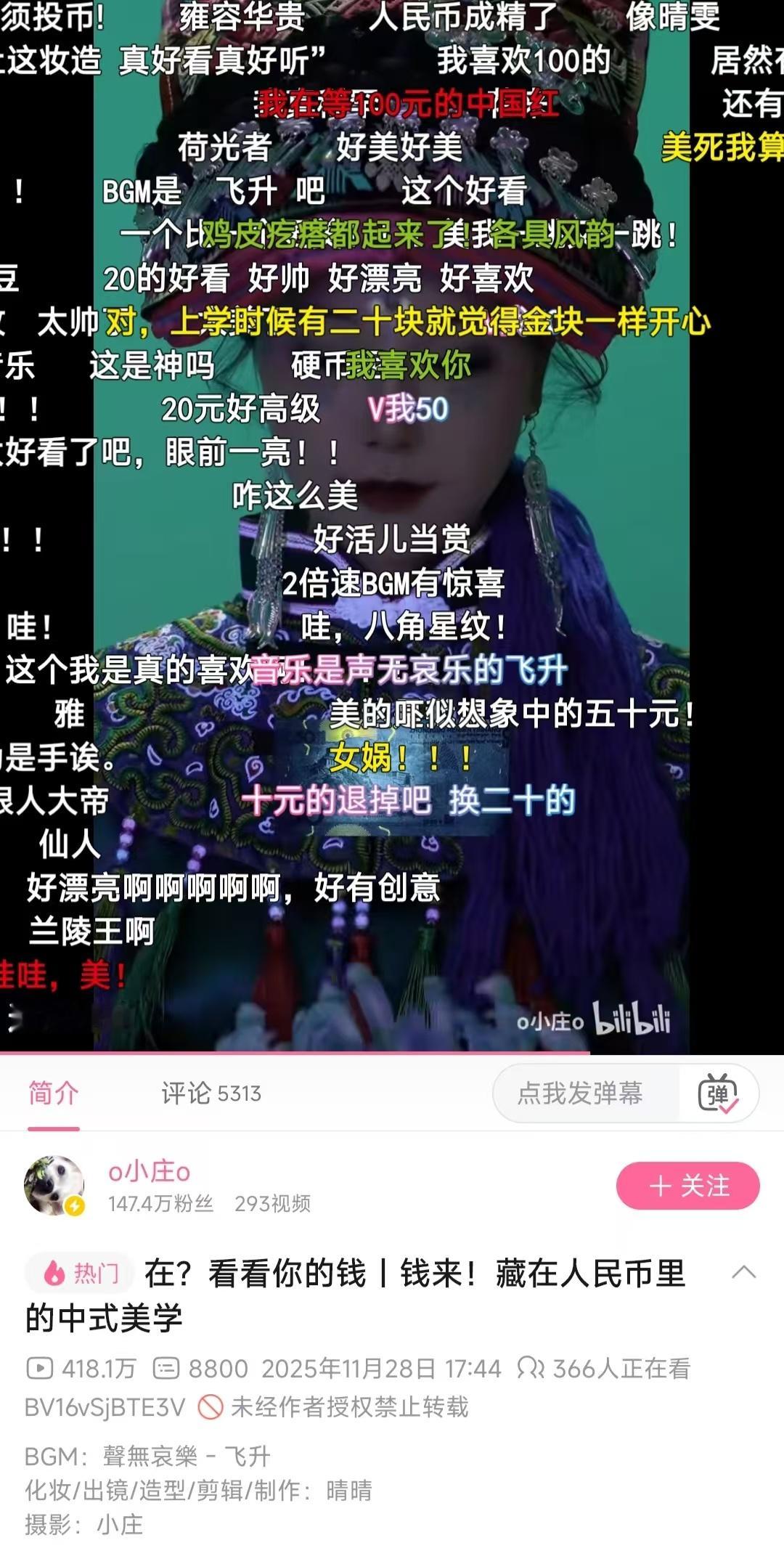 妈呀这个创意太绝了,而且不得不说咱们人民币设计的处处彰显中式美学,怪不得我这么喜欢呢!必须安利一下这位创意满满的小破站UP主 “o小庄o”!这期变装已经让我惊掉下巴,但是“人民币变装”只是她脑洞的冰山一角,主页内容更是让人惊掉下巴,而且评论区还有精美拼图+人民币美学讲解指路。上网能挖到这种高质量内容,值了!第一次见cos人民币