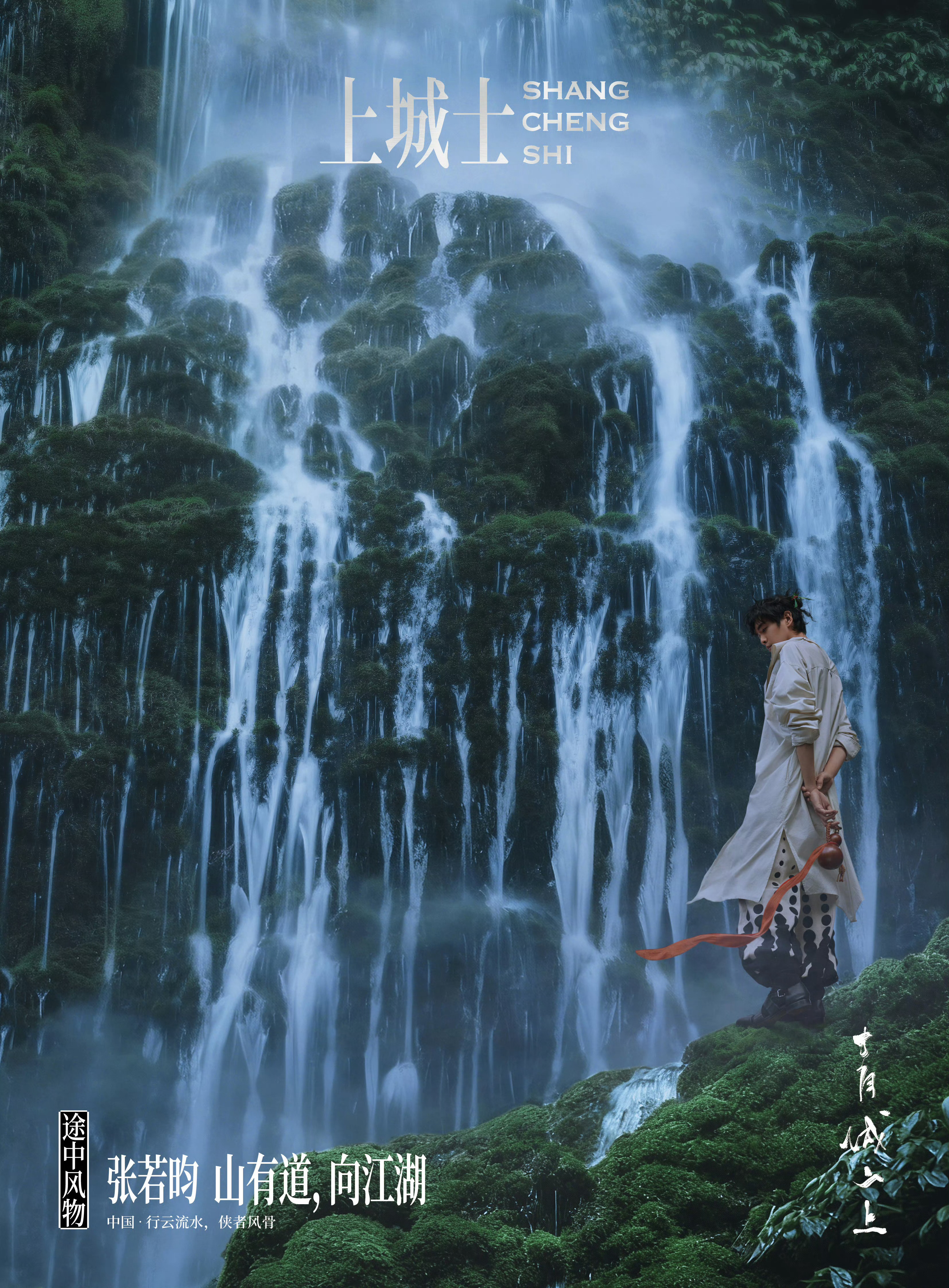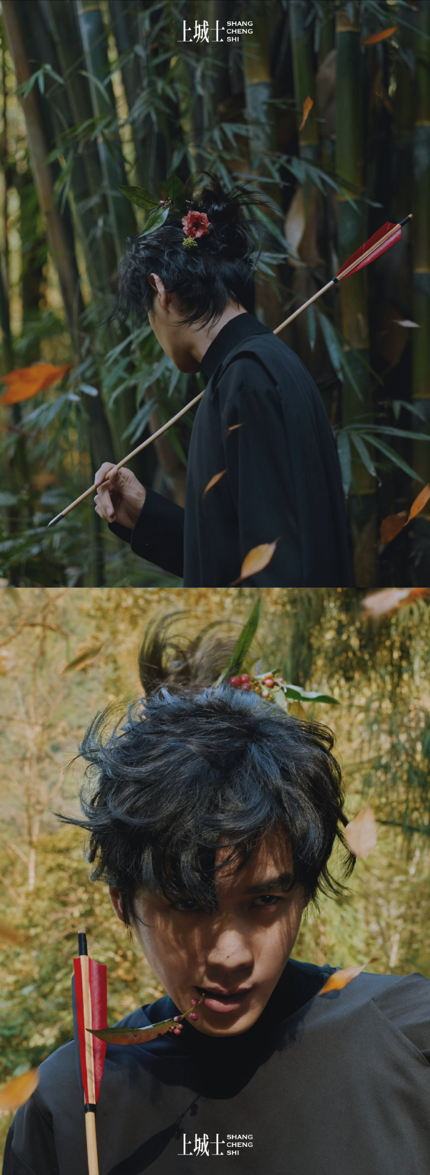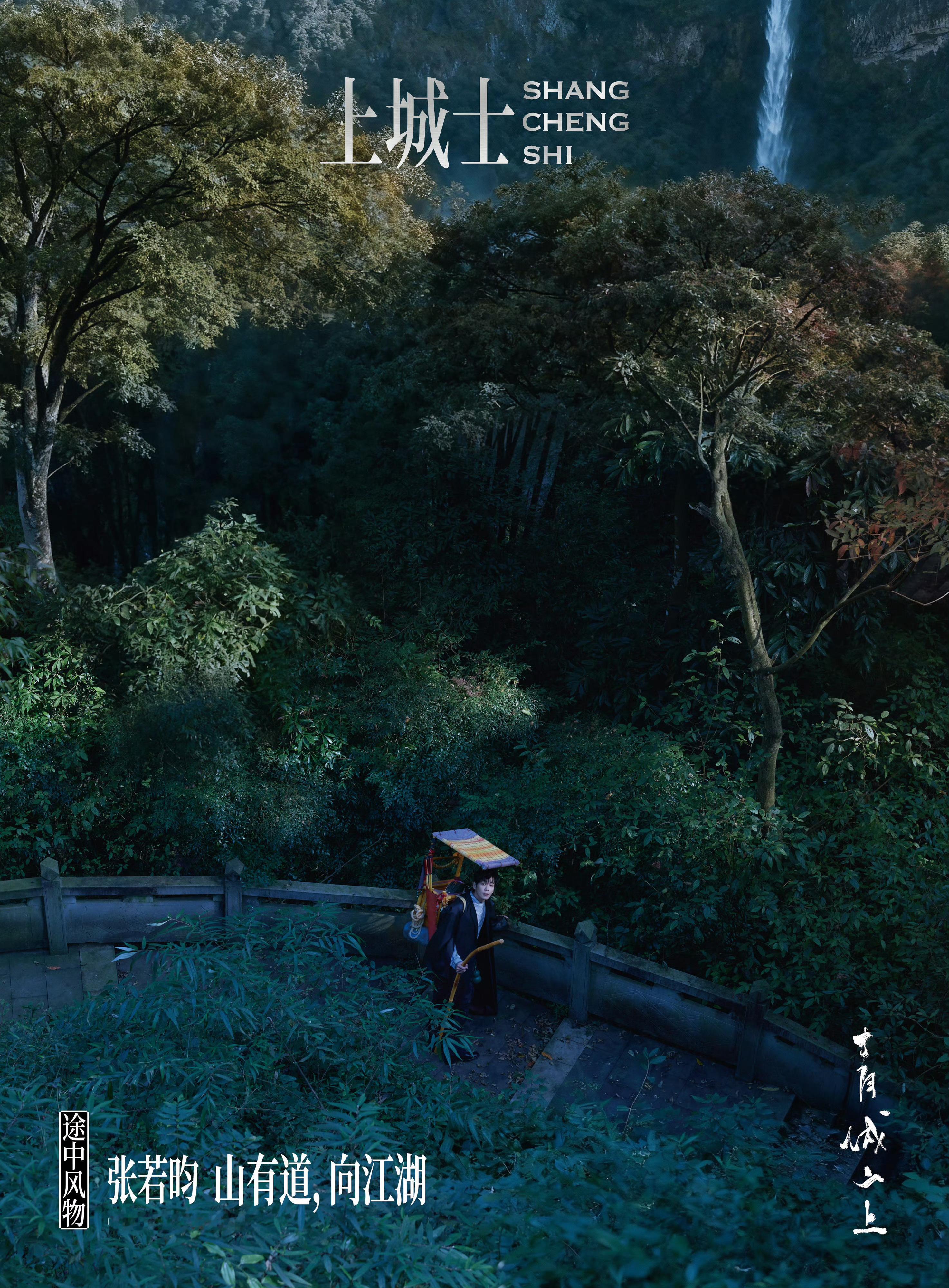 张若昀「上城士途中风物046」🪭🍵🍁 素雅长袍、竹编书箱… 穿行于古道亭阁与密林间,结合武侠意境与东方意蕴,一段秋冬时节的青城山之旅。摄影: 陈漫