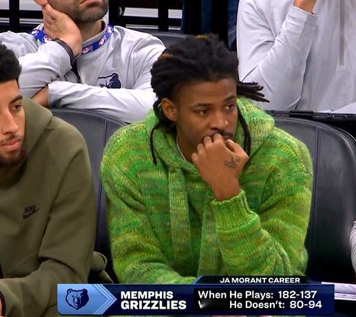 ▲莫兰特职业生涯出战/缺席期间的战绩对比