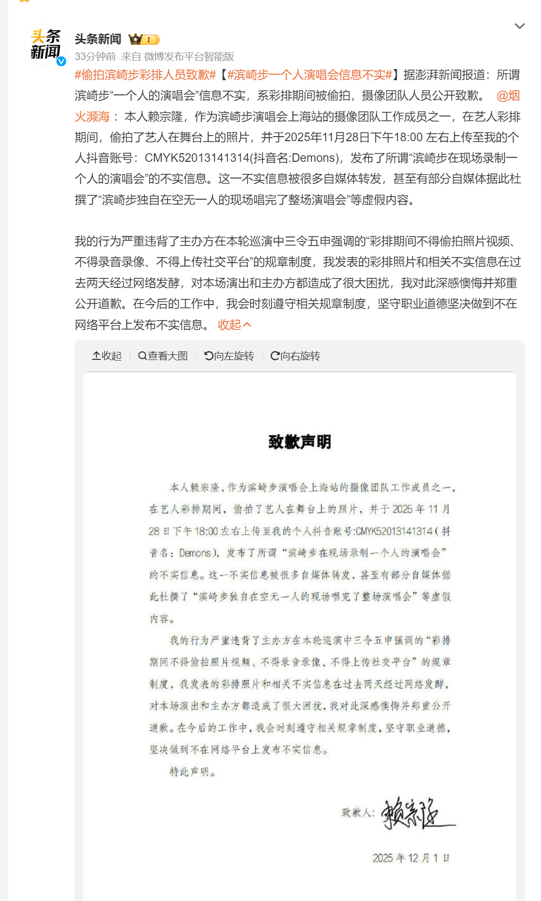 既然滨崎步“一个人的演唱会”是假的,滨崎步团队的摄像师赖宗隆承认了是他偷拍又造谣