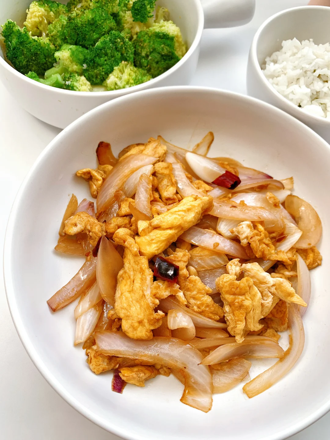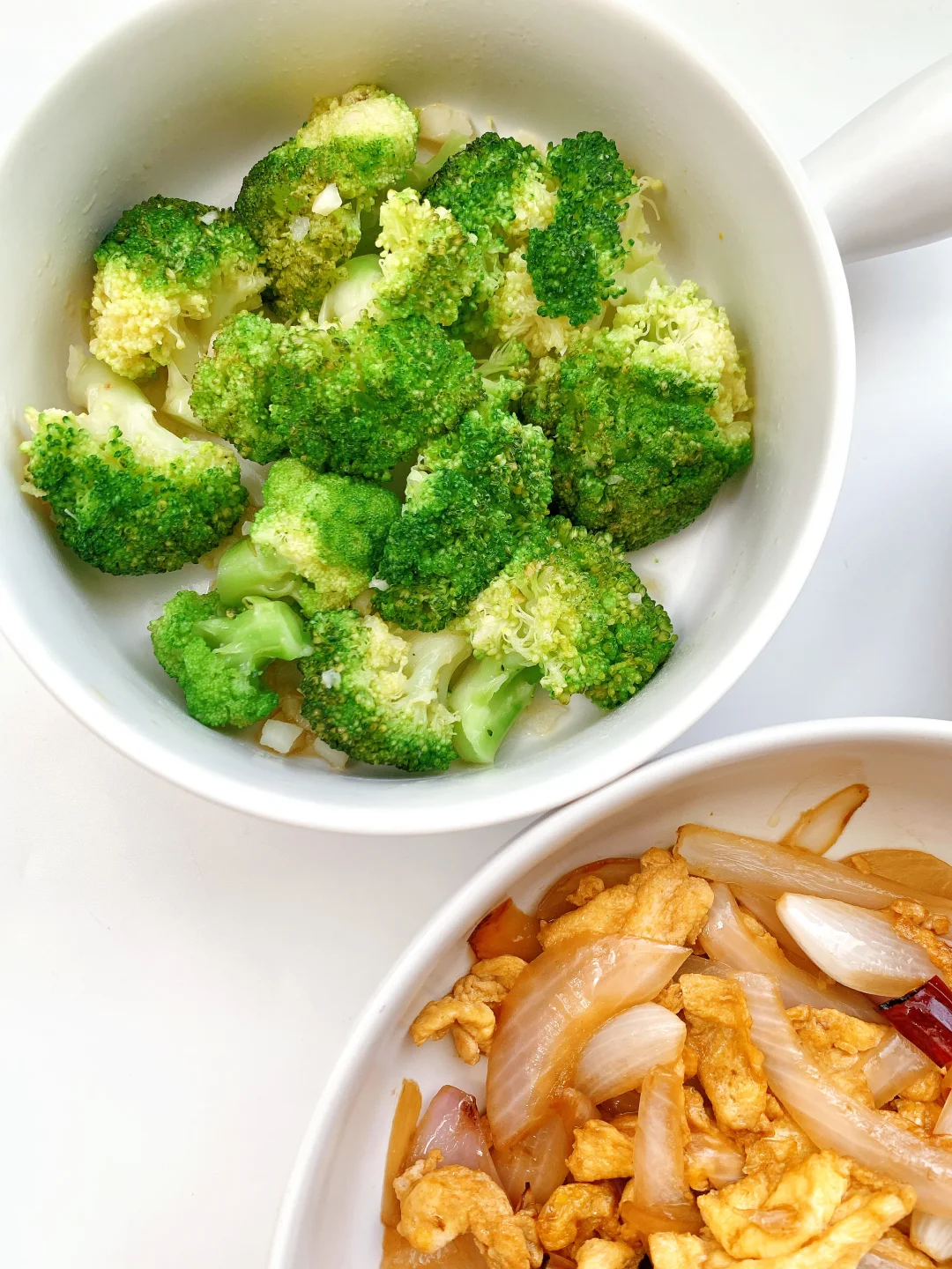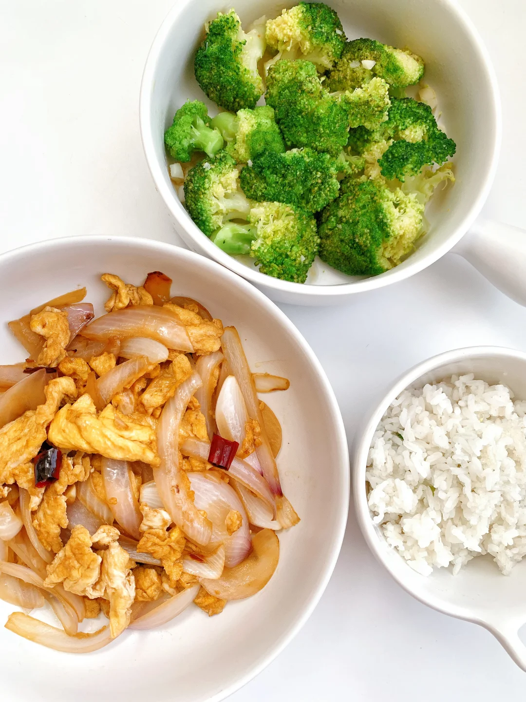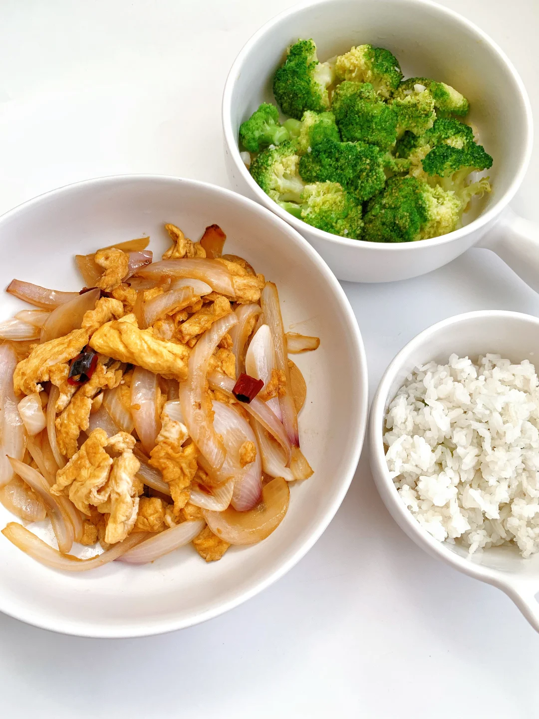 ♨️晚餐不到400大卡,每天跟我一起吃干净的饭吧 今日分享: 🥬蒜蓉西蓝花 🍖洋葱炒鸡蛋 今日主食:米饭
