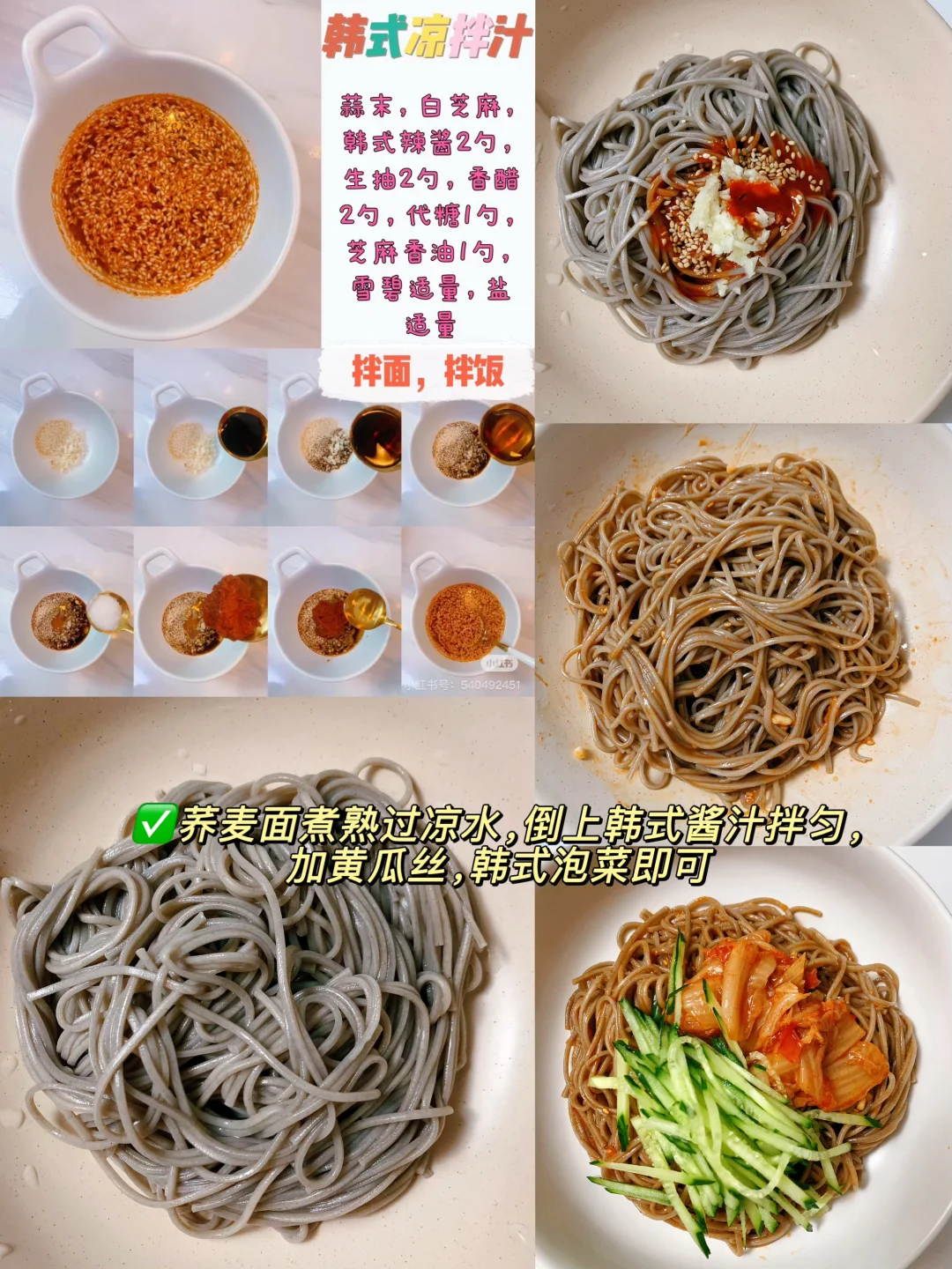 今日分享:韩式凉拌荞麦面[向右R]夏天黄瓜🥒和荞麦面更配啊~ 做法见上图👆🏻 🕒时间:10分钟 🤞难度:⭐ 吃饱吃瘦不饿~减脂餐的终点🏁是家常菜❗无运动吃瘦的两个多月,虽然慢但是健康啊~ 📙我的主页收藏早中晚三餐食谱,一周食谱…………………………………………………………………………………………夏天就靠它❗低卡荞麦面分享~