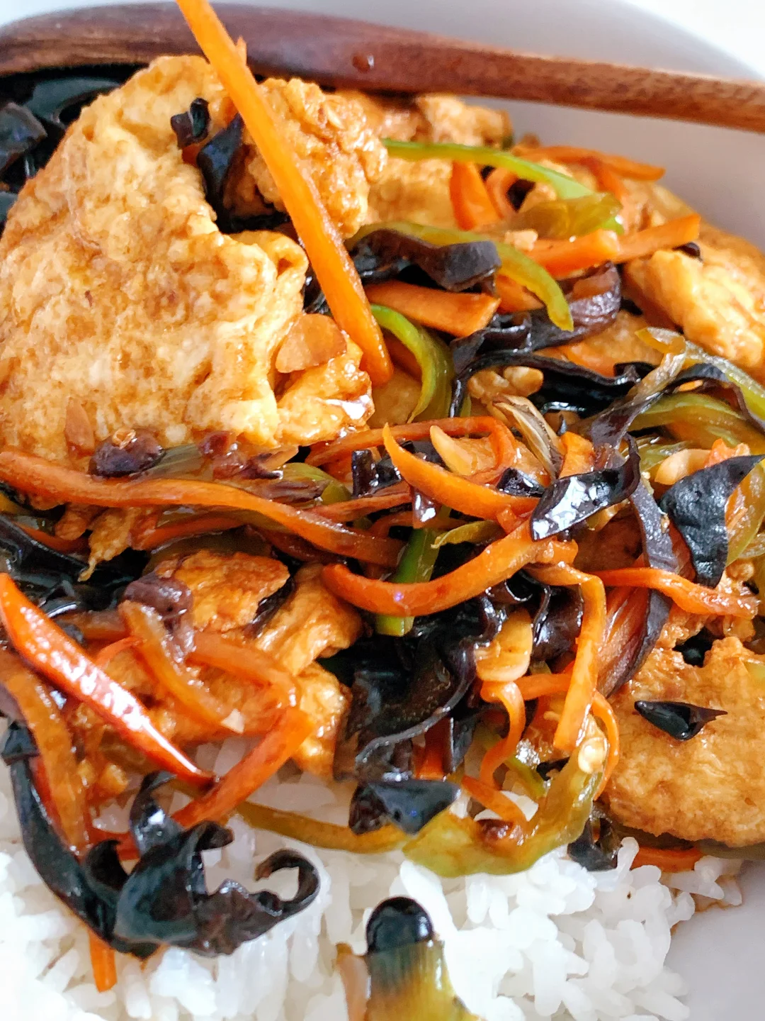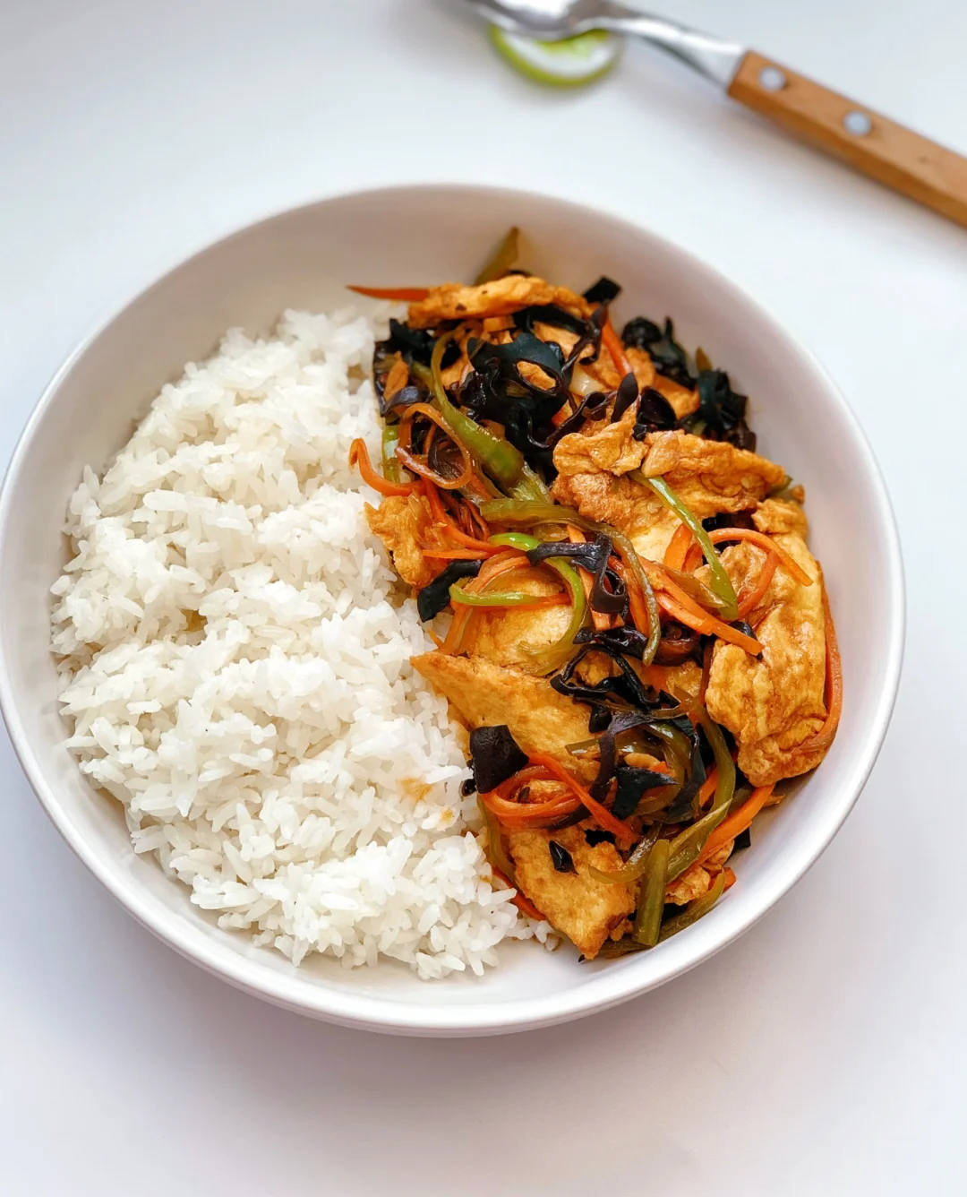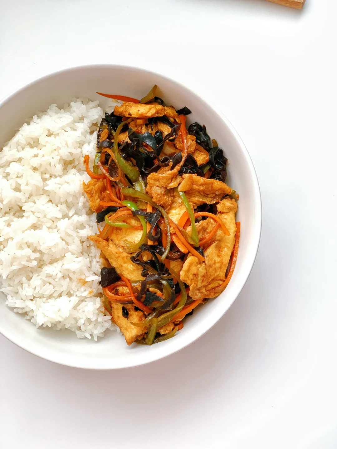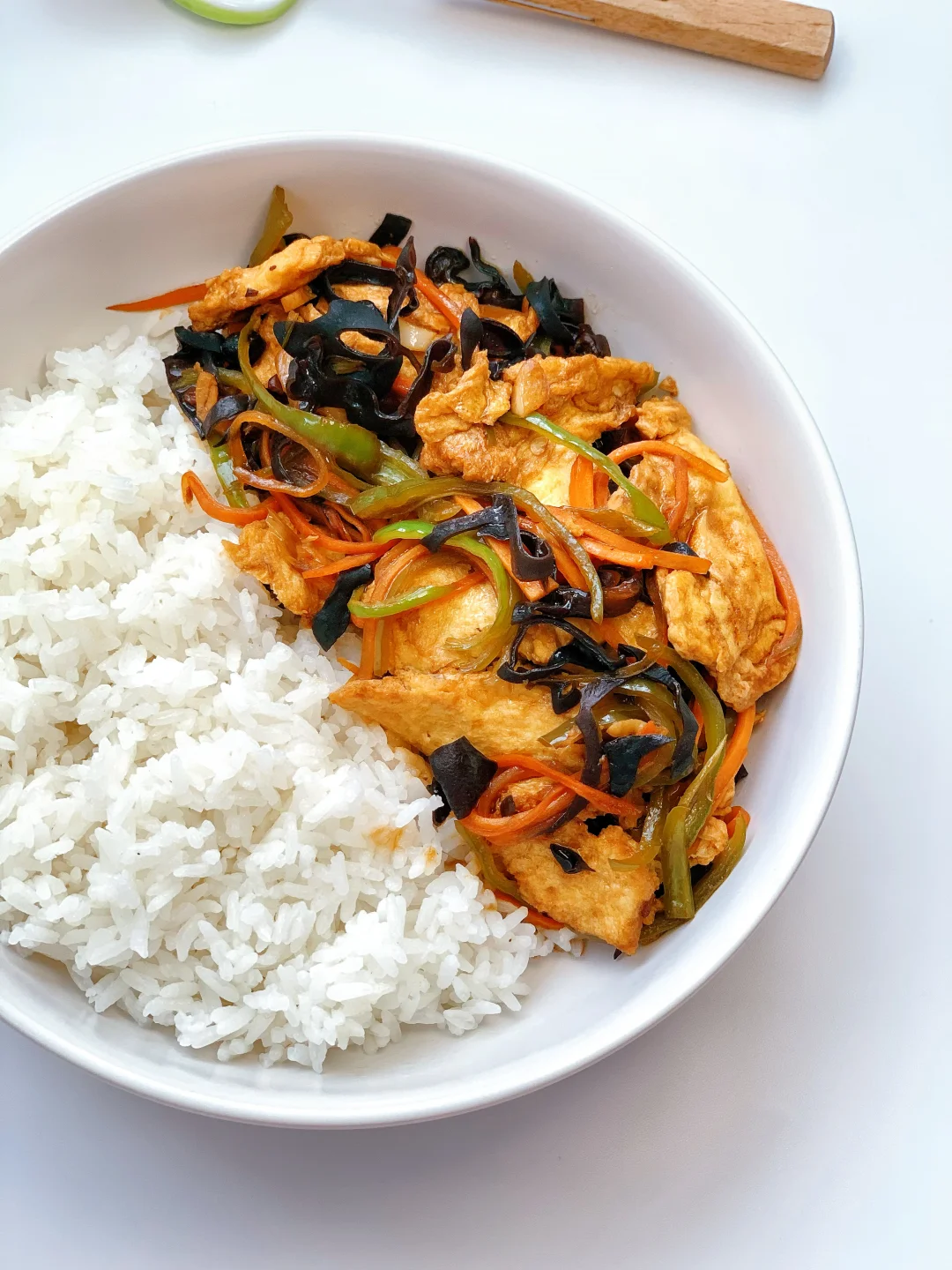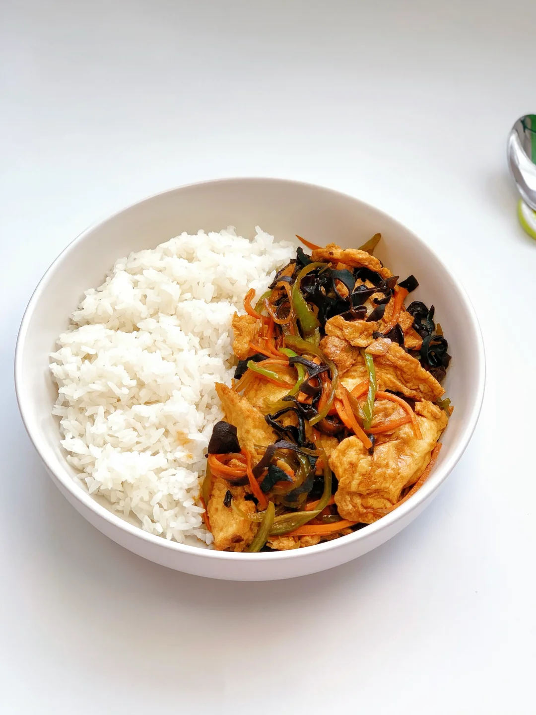 健康又营养 今日分享:一人食健康早午餐:鱼香鸡蛋盖饭 做法见上图👆🏻 🕒时间:20分钟 🤞难度:⭐⭐ 食材:半根胡萝卜🥕,木耳,2个鸡蛋,一个青椒🫑,三颗木耳 ♨️鱼香汁:两勺生抽,两勺陈醋,1勺蚝油,一勺白糖,1勺淀粉,半碗清水 [哇R]吃饱吃瘦不饿~减脂餐的终点🏁是家常菜❗无运动吃瘦的两个多月,虽然慢但是健康啊~ 📙我的主页收藏早中晚三餐食谱,一周食谱……………………………………………………………………………………