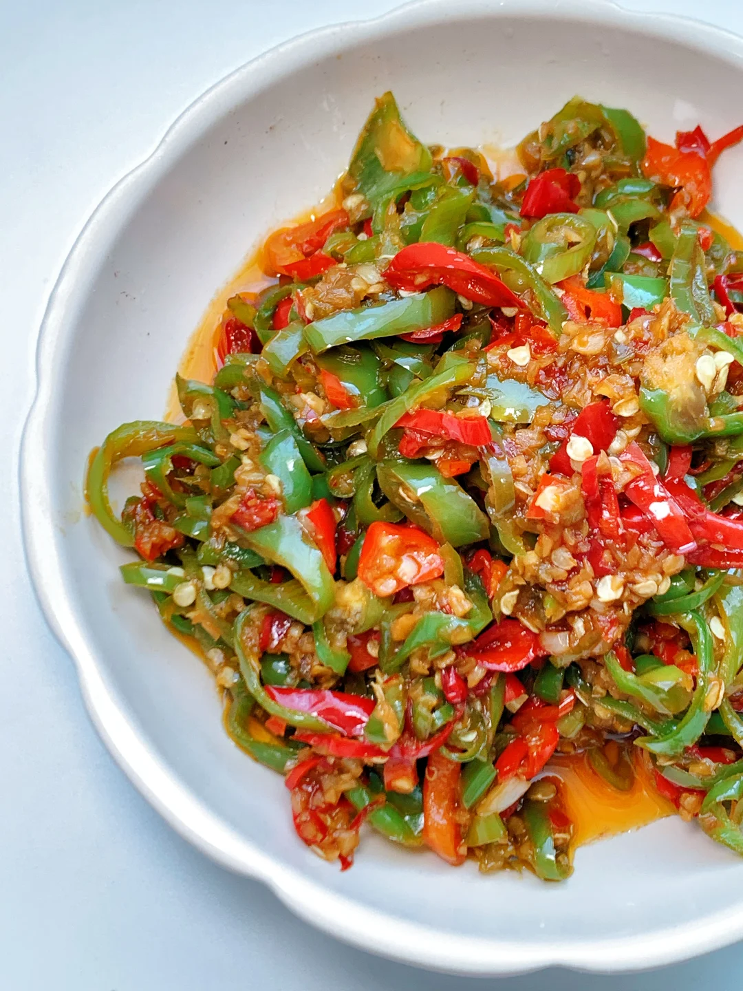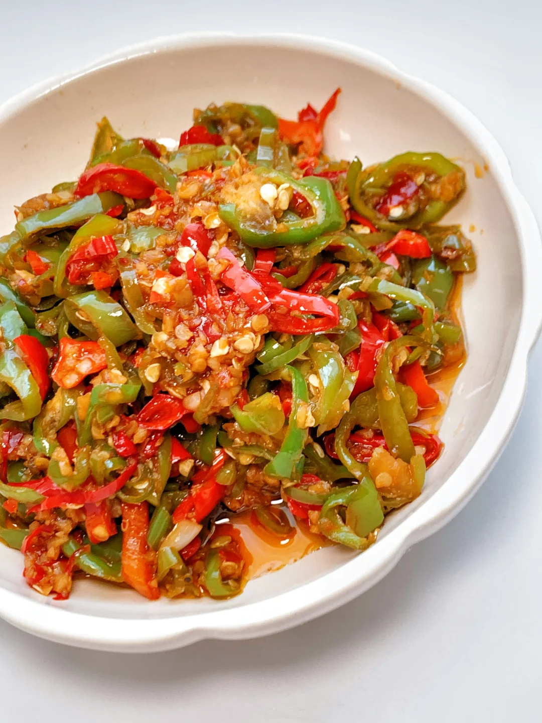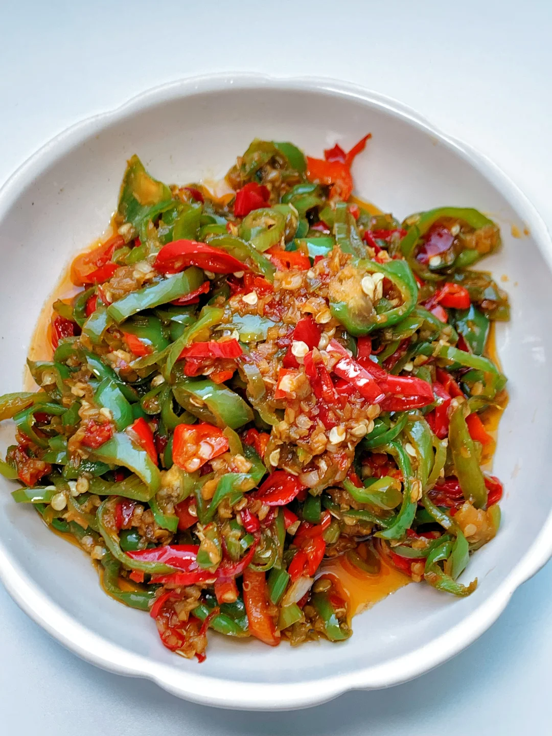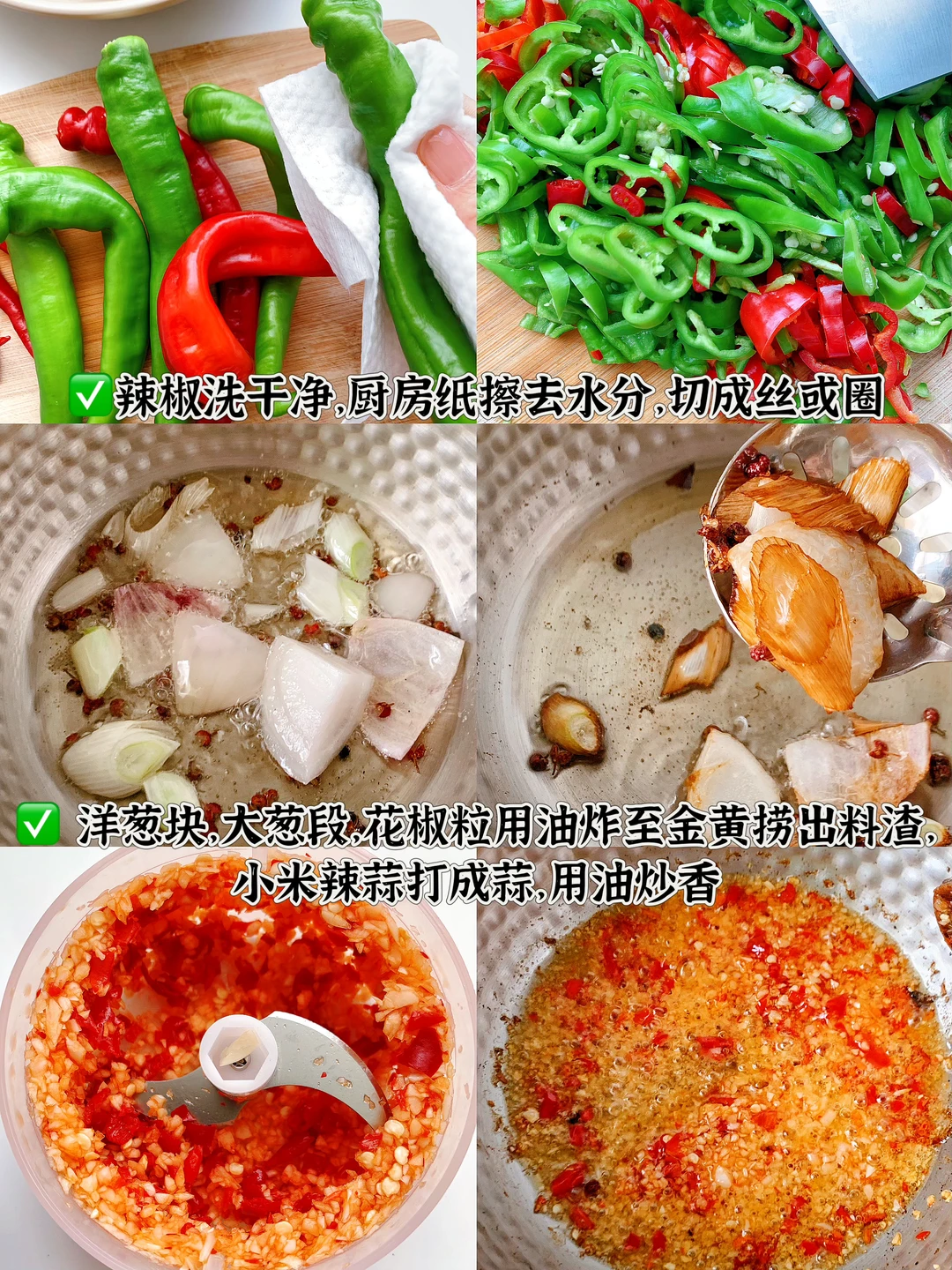 每次可以多做点,朋友们都抢着要,香辣开胃,💯自制鲜辣椒酱,超级无敌好吃😋,拌饭,拌面,夹馒头,还有拌凉菜都是一绝,真的是比肉还好吃呀~ ㊙️不喜欢切丝的,可以用料理机或者绞肉机搅碎🌶️ 食材:青红辣椒,小米辣,蒜🧄,洋葱,大葱,花椒粒 做法见图片6️⃣7️⃣ Tips: 1️⃣清洗的辣椒要用厨房纸擦去水分 2️⃣加一勺白酒增香,还可以延长保质期 3️⃣储存在无油无水的罐子里冷藏,可以保存3-5天