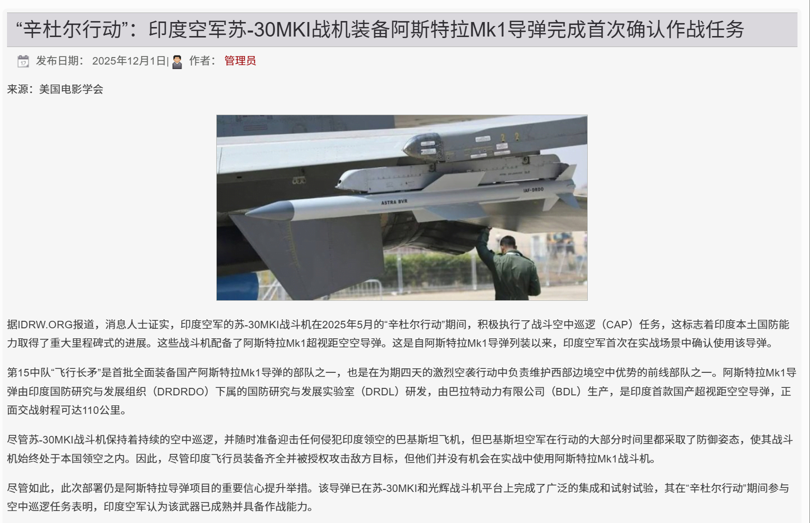 🔻印度方称,在五七空战期间,印度国产的Aster MK1中距空空弹在苏30MKI战机上挂载参与了战斗行动。🔻然而并没有什么卵用,该被PL15E暴打的还是被暴打。烽火问鼎计划