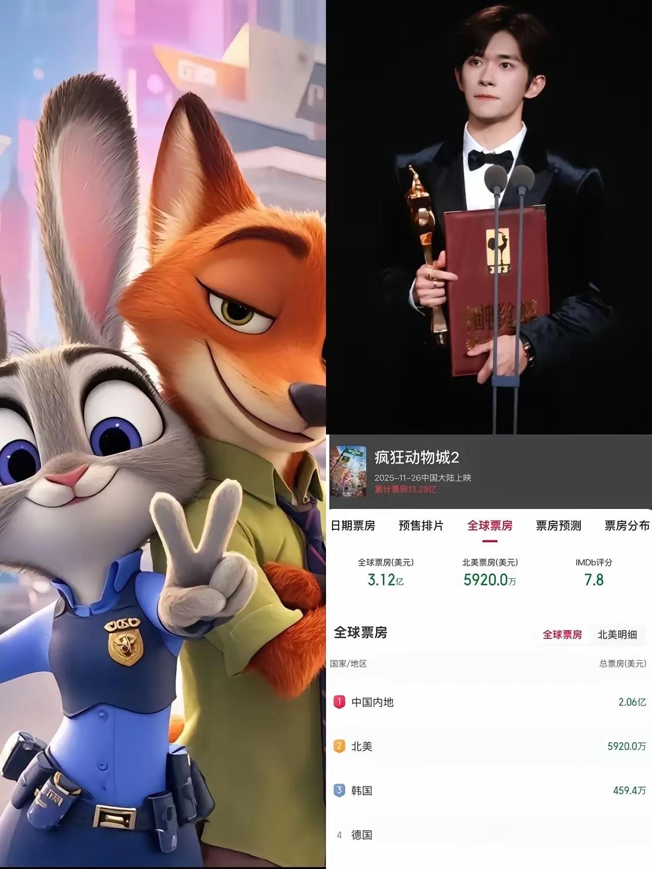 自从《哪吒2》成为现象级爆火电影,内娱影视一直处于不温不火的状态。其他的压根不用说了,就连新晋金鸡奖影帝易烊千玺,他一人分饰五角的新电影《狂野时代》也扑了街 ​万万没想到,拯救了电影市场的竟然是动画片《疯狂动物城2》,一上映票房就爆了,只用了6天就实现了19.45亿的票房,这真的也太猛了吧! 周末去看了,《疯狂动物城1》的口碑和质量实在是太好了,2只要不太拉胯,铁定爆款。而且动漫相比较真人,可以避免很多不必要的麻烦。未来国内外的爆款电影,大概率还会继续出现在动漫领域。 当《疯狂动物城2》以3.1亿元预售票房超越《哪吒之魔童闹海》,创下中国影史动画电影预售新纪录时,我们看到的不仅是一部续作的胜利,更是好莱坞顶级IP在经过三年沉淀后的强势回归。这组数据背后,藏着当下中国电影市场的密码。