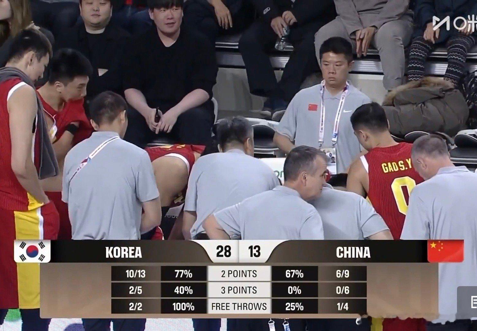 中国男篮vs韩国男篮 第一节只得到13分,落后韩国队15分,这是只少了一个赵睿的中国男篮国家队啊中国男篮国家队