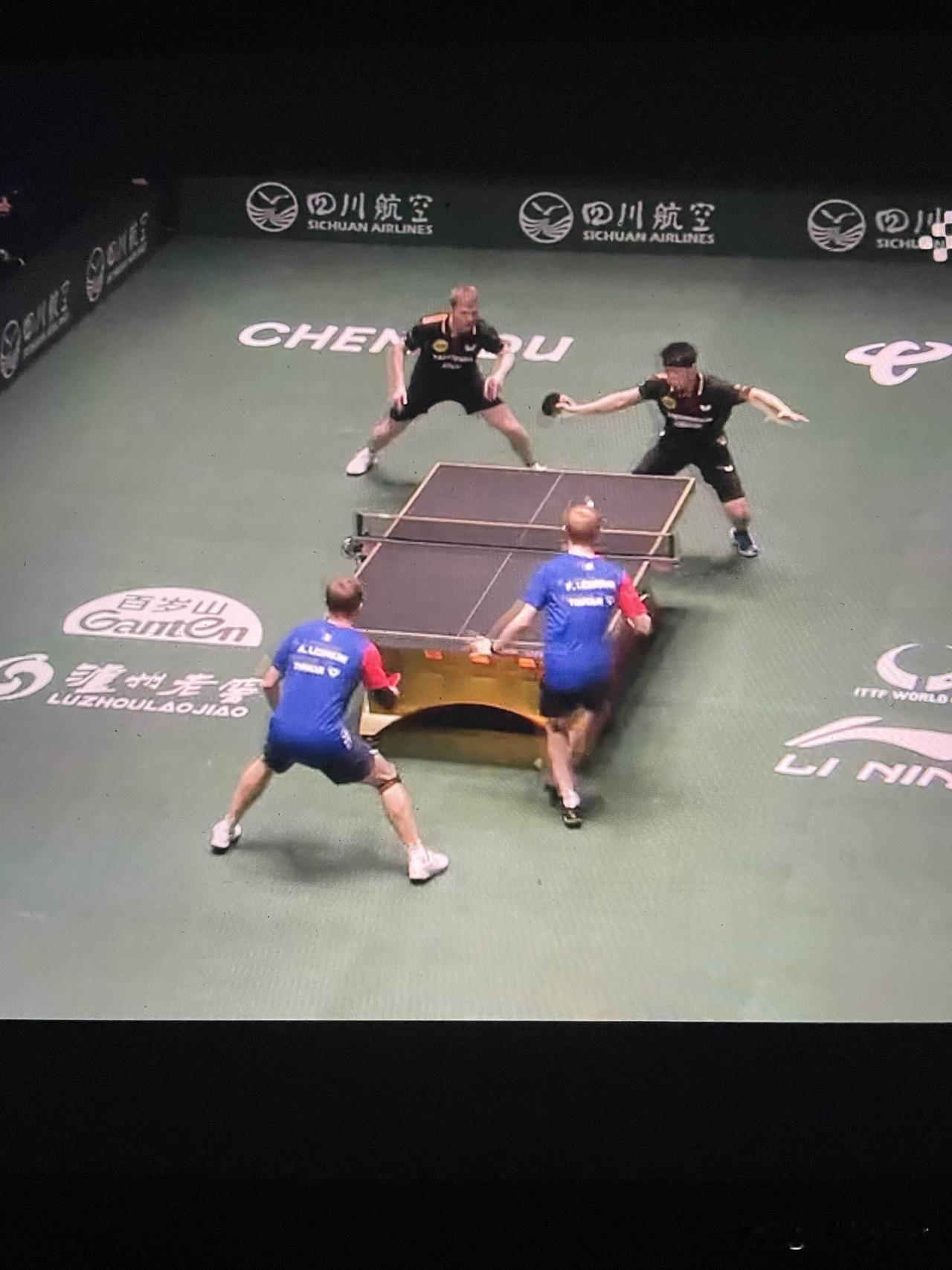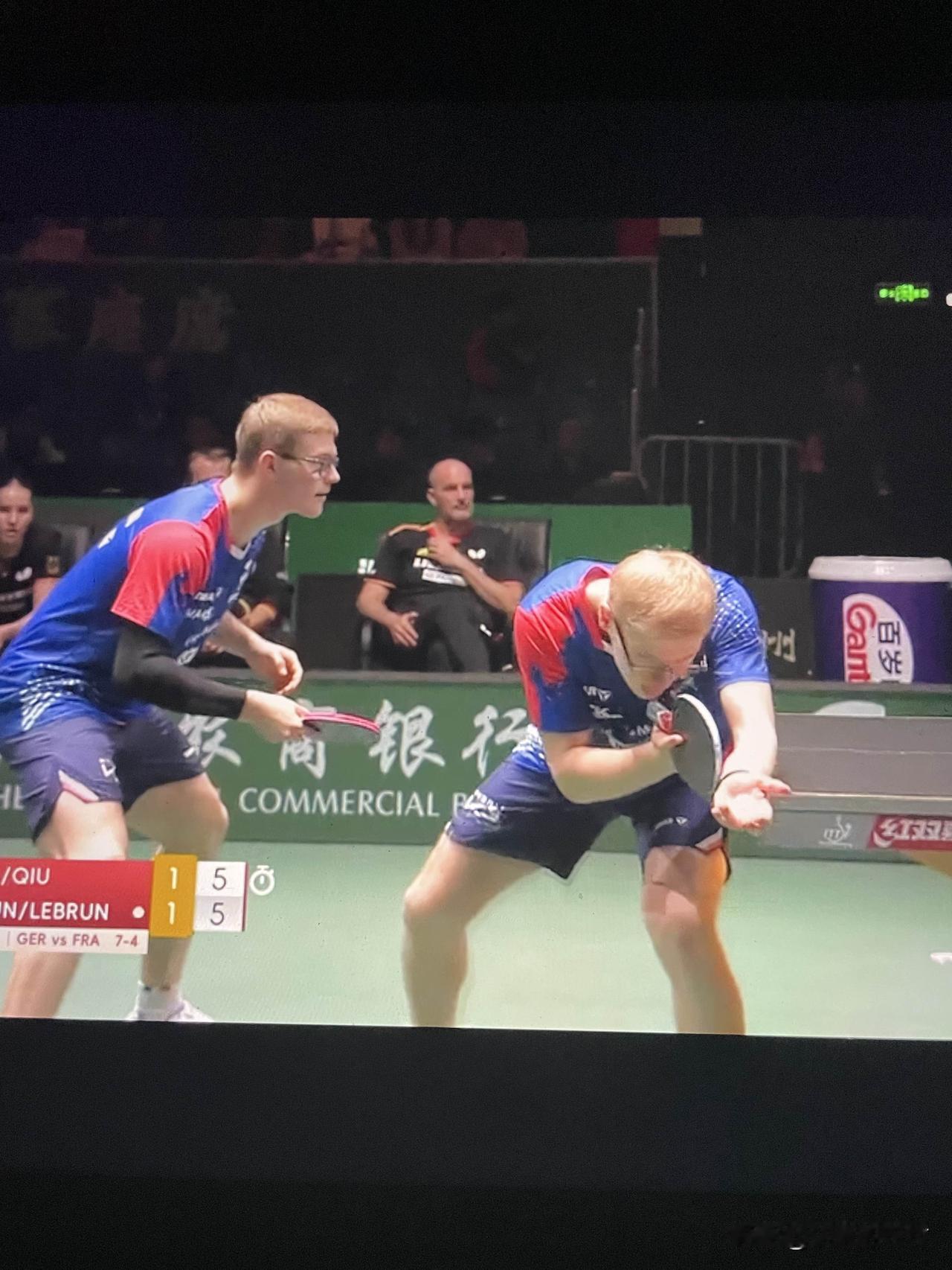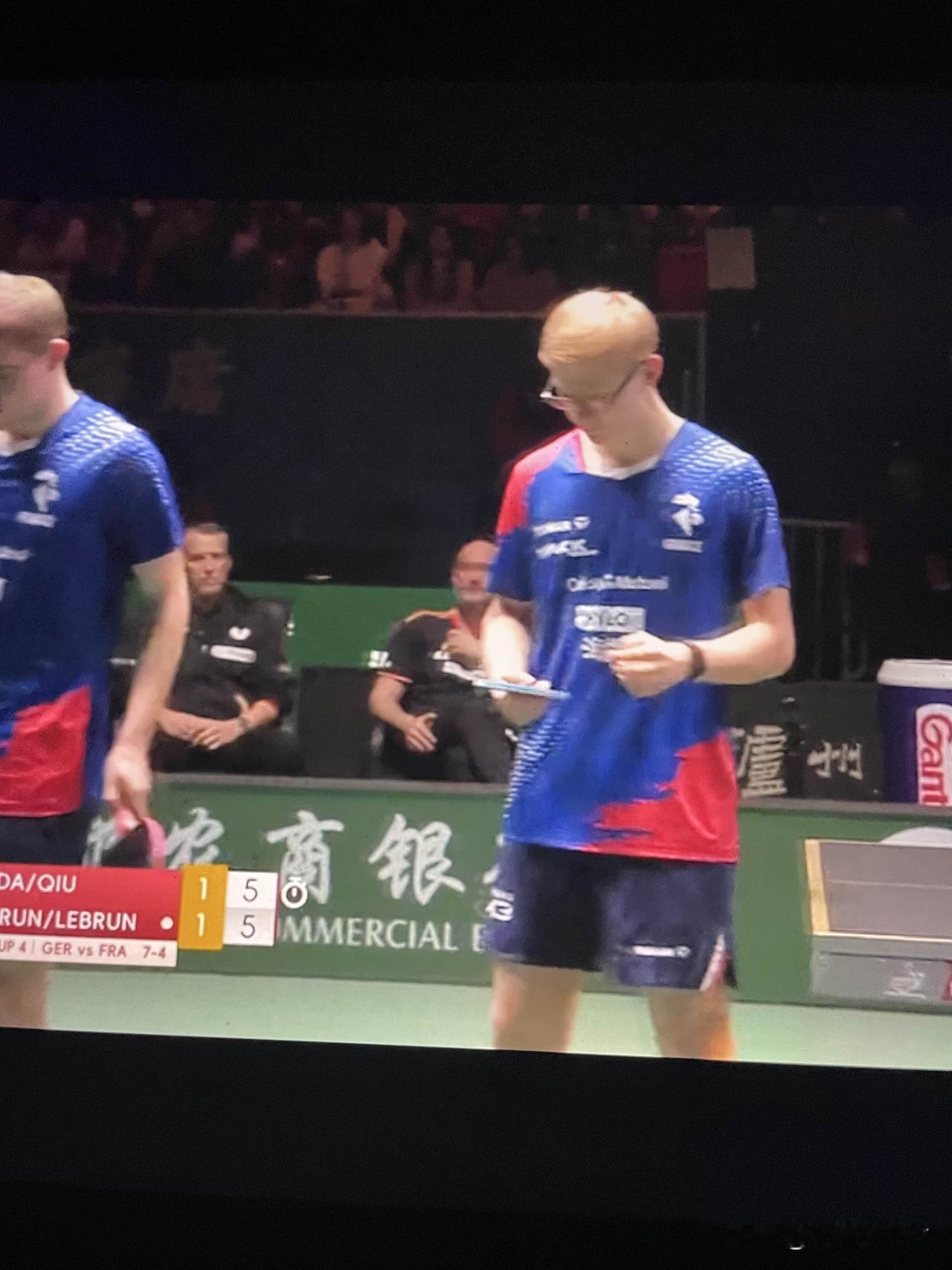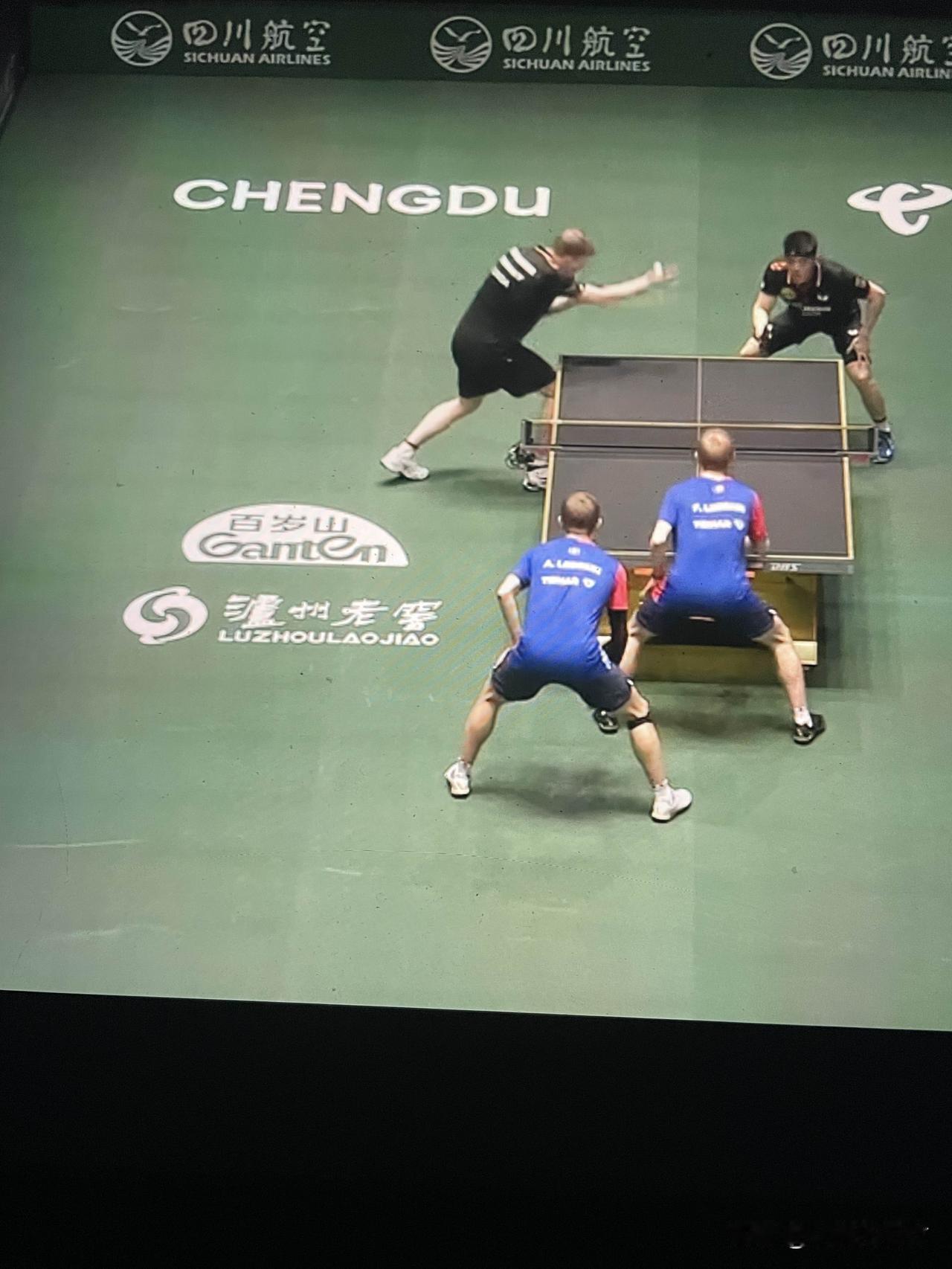 费利克斯·勒布伦单打双打都输杜达 成都混合团体世界杯小组赛 法国队4:8德国队 第四场男双 第一局勒布伦兄弟11:9战胜杜达邱党 第二局杜达邱党11:7战胜勒布伦兄弟 大勒布伦小勒布伦对阵杜达邱党 第三局6:5,勒布伦兄弟得分7:5,勒布伦兄弟得分8:5,邱党得分8:6,邱党反手得分8:7,法国队叫暂停。暂停回来杜达邱党连续得分9:8,勒布伦兄弟得分9:9。双方得分10:10,邱党发球,杜达正手进攻得分11:10,杜达得分12:10。天啊!杜达邱党赢下第三局。 德国队8:4战胜法国队 费利克斯·勒布伦单打双打都输了 费利克斯·勒布伦1:2杜达。杜达状态真好 法国女单也输了 法国队输德国队