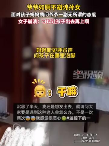 福建,孙女在厕所泡脚,爷爷直接进去解开裤子小便,孩子妈妈看到后怒斥爷爷太变态了!