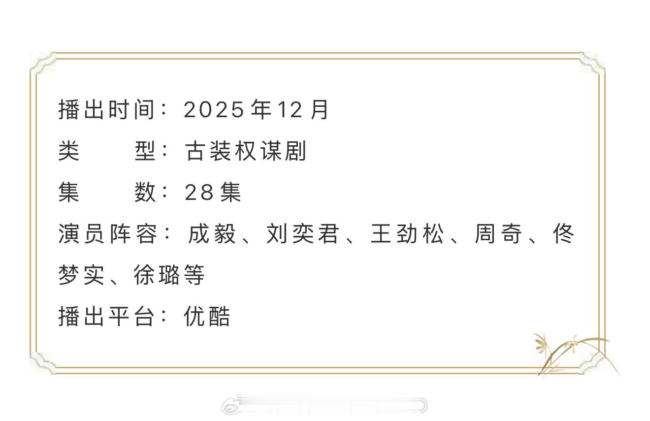 成毅《长安二十四计》播前招商,将在12月优酷播出,期待了!!