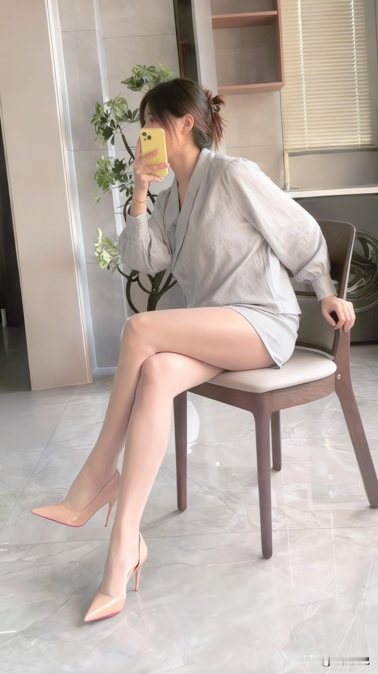 怎么穿搭会让人比较显温柔浅灰色套装搭配裸色细跟高跟鞋#每日穿搭 女人都喜欢穿高跟鞋吗