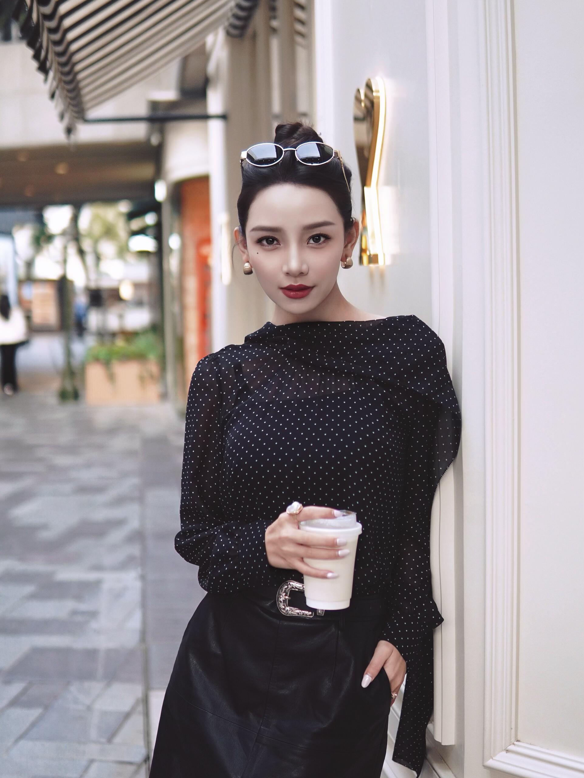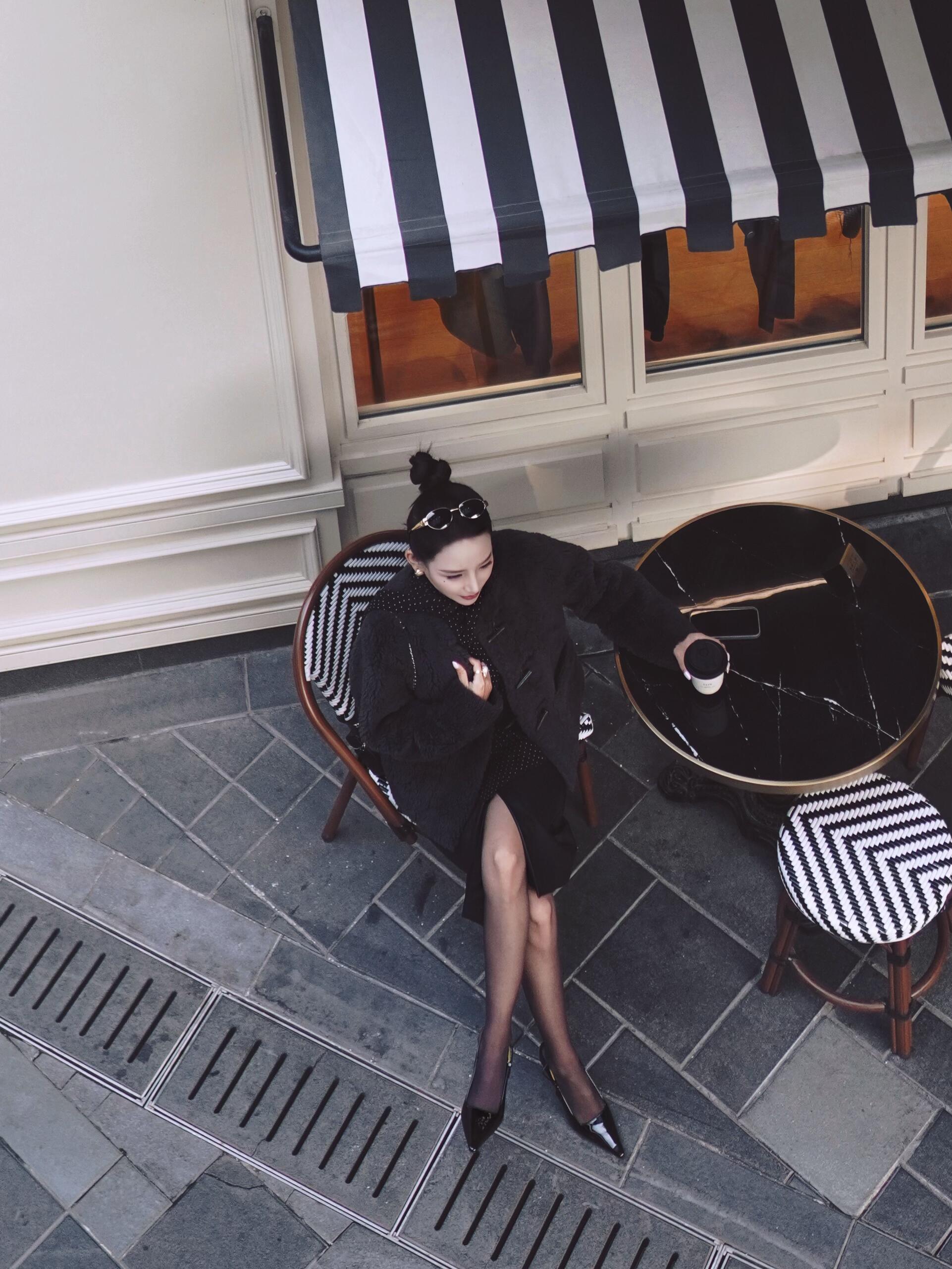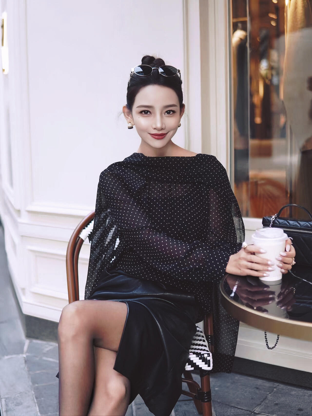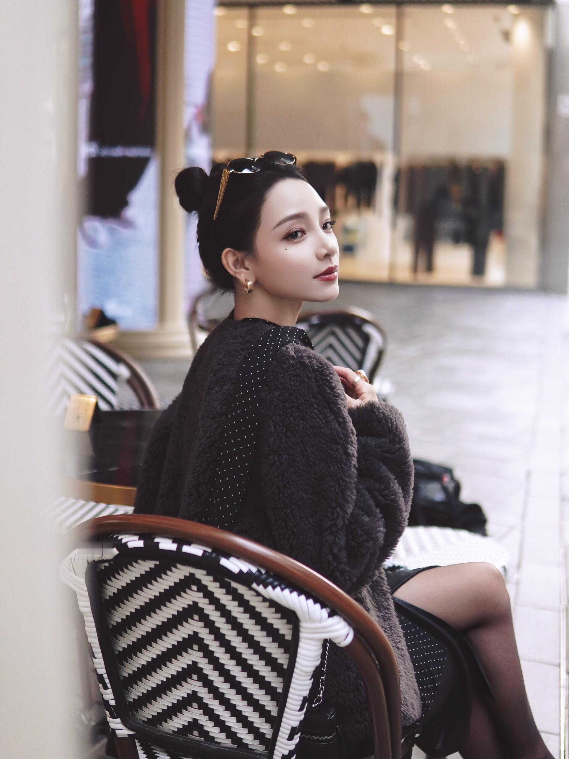 优雅气质少女,坐在现代简约风格的咖啡馆里,散发着温柔与自信。