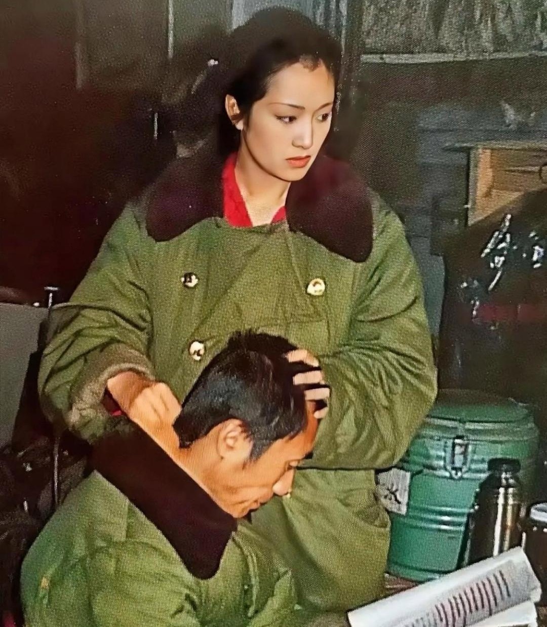这张拍摄于1987年的片场工作照,记录了张艺谋与巩俐在拍摄间隙休息的场景。当时37岁的张艺谋正专注地研读剧本,22岁的巩俐则站在一旁为他按摩放松。照片中两人年龄的反差和工作状态的互动,展现出中国电影黄金时代的创作氛围,画面充满岁月沉淀的美感。