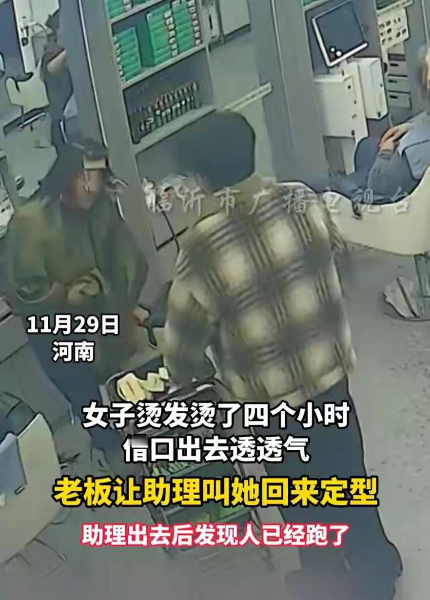 这得是穷成啥样了呢? 11月29日,河南一女子在理发店烫发,她从样板上挑好了自己喜欢的花型,理发师就开始为她软化头发 然后卷上了杠子。这番操作进行下来,大约花费了四个小时,眼看着烫的差不多了,这名女子突然说自己觉得很闷,想要出去透透气,没想到这一出去就再也没有回来。 当店家想要叫她进来做定型的时候,才发现人不见了!一查监控,那女子根本不是出去透透气那么简单,而是一出店门就加快脚步离开了! 不知道这女子是咋想的!如果爱美想烫发,就掏钱给人家。如果没钱,那也不必非要烫发。她偏偏为什么就搞了这么一出呢? 事儿不是大事,但现在到处都有监控,为了省掉这百八十元,却丢掉了做人的底线,人们的笑柄,何必呢?