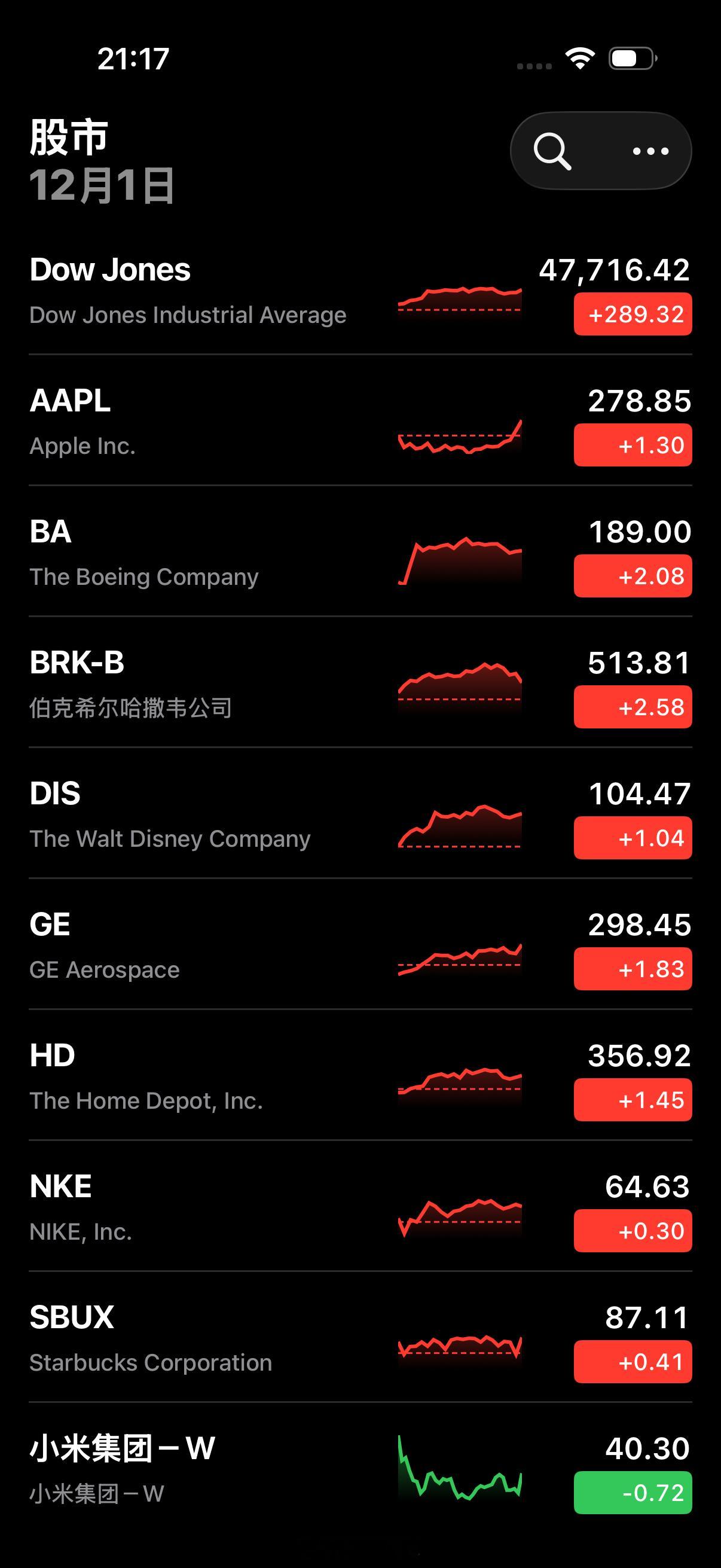 我打开苹果手机这个负一屏自带的“股市”入口,点进去前排好像都是全球知名公司,最下面有一个绿的,一看,01810