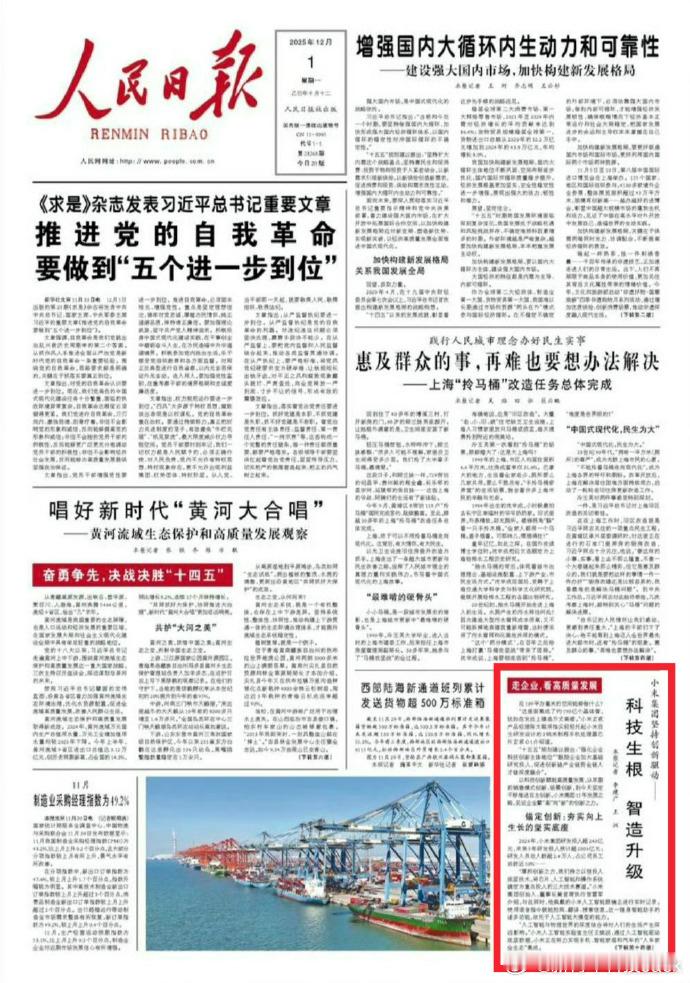 人民日报头版的含金量不用多说吧,小米这样跟着国家战略走的硬核科技公司,上面自然也是被作为标杆企业重点宣传和扶持。小米过去五年研发投入超千亿元,未来五年将超过2000亿,底层技术的投入这块小米最近几年是真的猛,玄戒O1造芯3nm研发设计取得不错突破落地,填补内地3nm先进制程空白,同时智能制造方面也是做成了平台化,帮助200多家供应链制造企业完成产业升级和融合。在规模方面也是产业前列,全球前三的手机终端销量以及超过10亿台智能设备,人车家全生态的小米,毫无疑问是中国科技创新的中坚力量。认清形势和趋势,黑子们早点收手吧!人民日报谈小米集团高质量发展