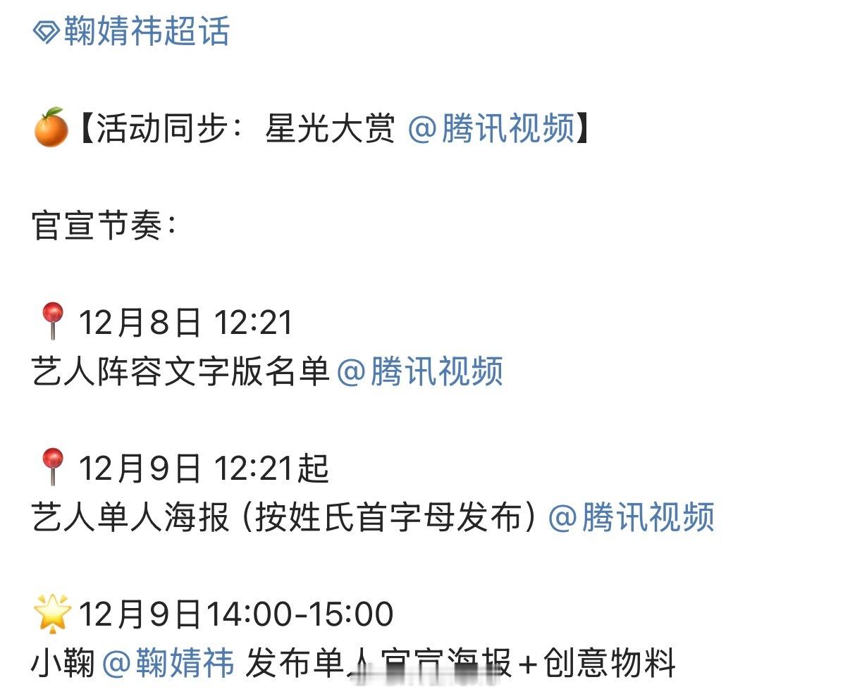 鞠婧祎、田曦薇、周也确定参加星光大赏啦!期待三位女演员啦!(排名不分先后)星光大赏
