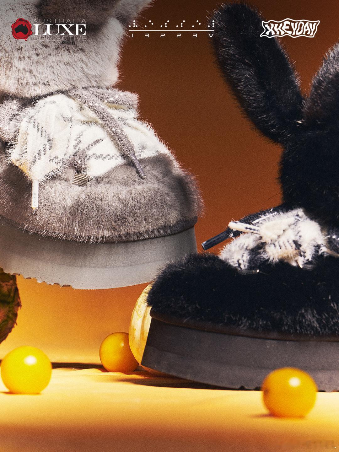 对抗寒冬,你需要一件暖萌神器来自xVESSEL × Australia Luxe Collective × HEYDAY三方联名墩墩兔雪地靴它不仅是保暖装备,更是风格单品解构的趣味、创意的巧思、羊毛的触感,共同编织出这个冬天的温暖语言「酷酷黑黑」、「治愈灰灰」、「粉粉嫩嫩」、「顺顺栗栗」它们不止是颜色,更是你寒冬个性的可爱表达xvesselxvessel在哪