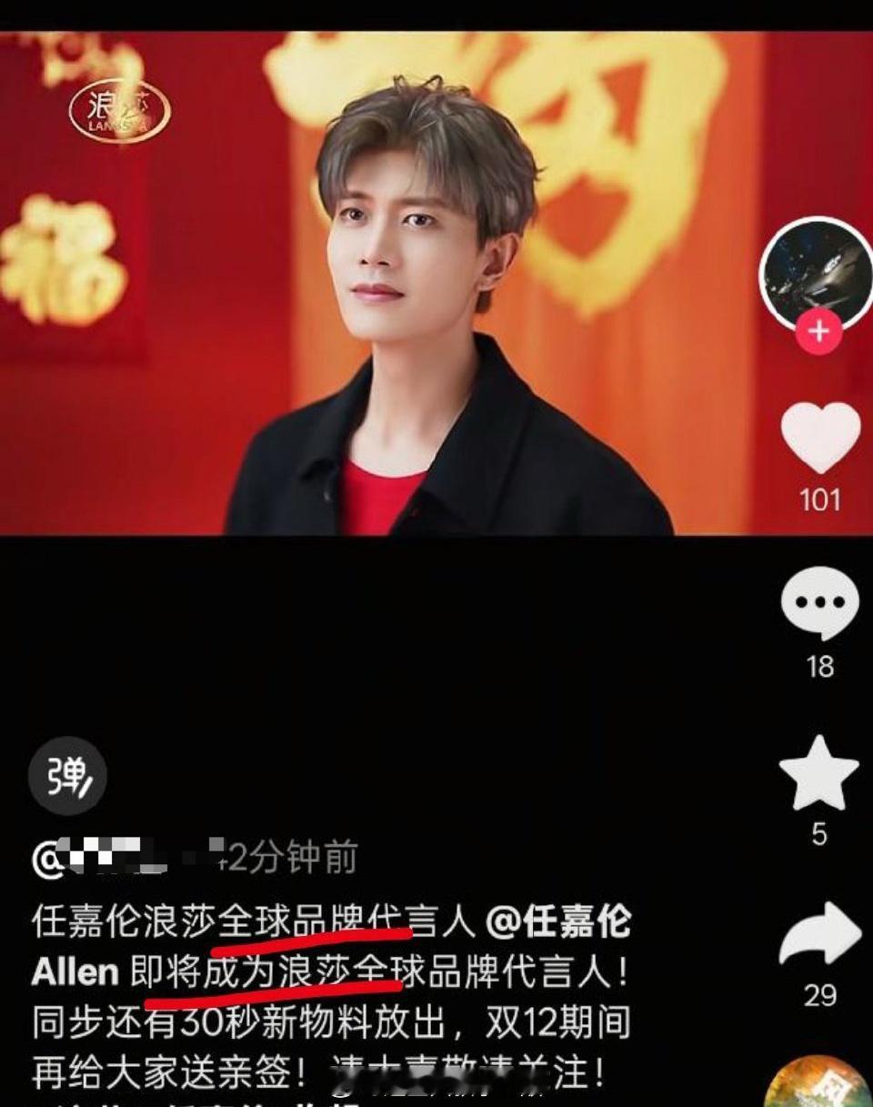 任嘉伦浪莎这是要升title了吧,全球品牌代言人