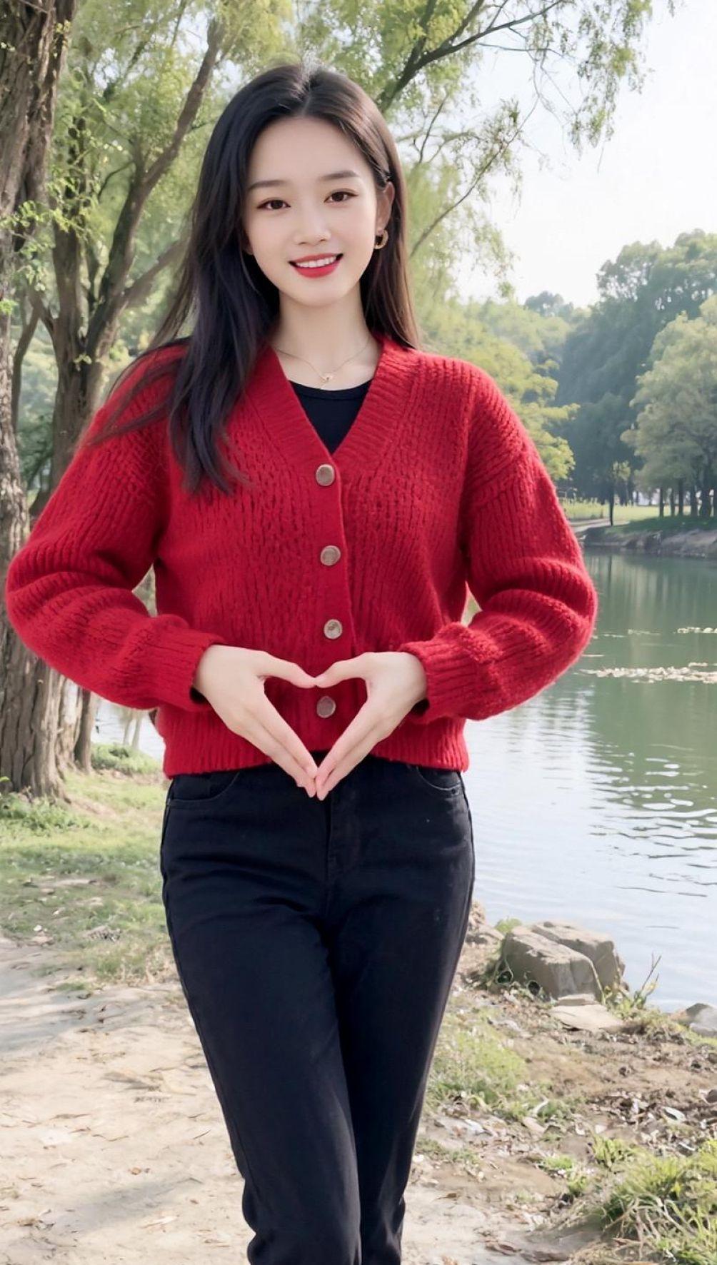 AI湖畔红衣照 随拍 气质穿搭 美女 抖音ai创作