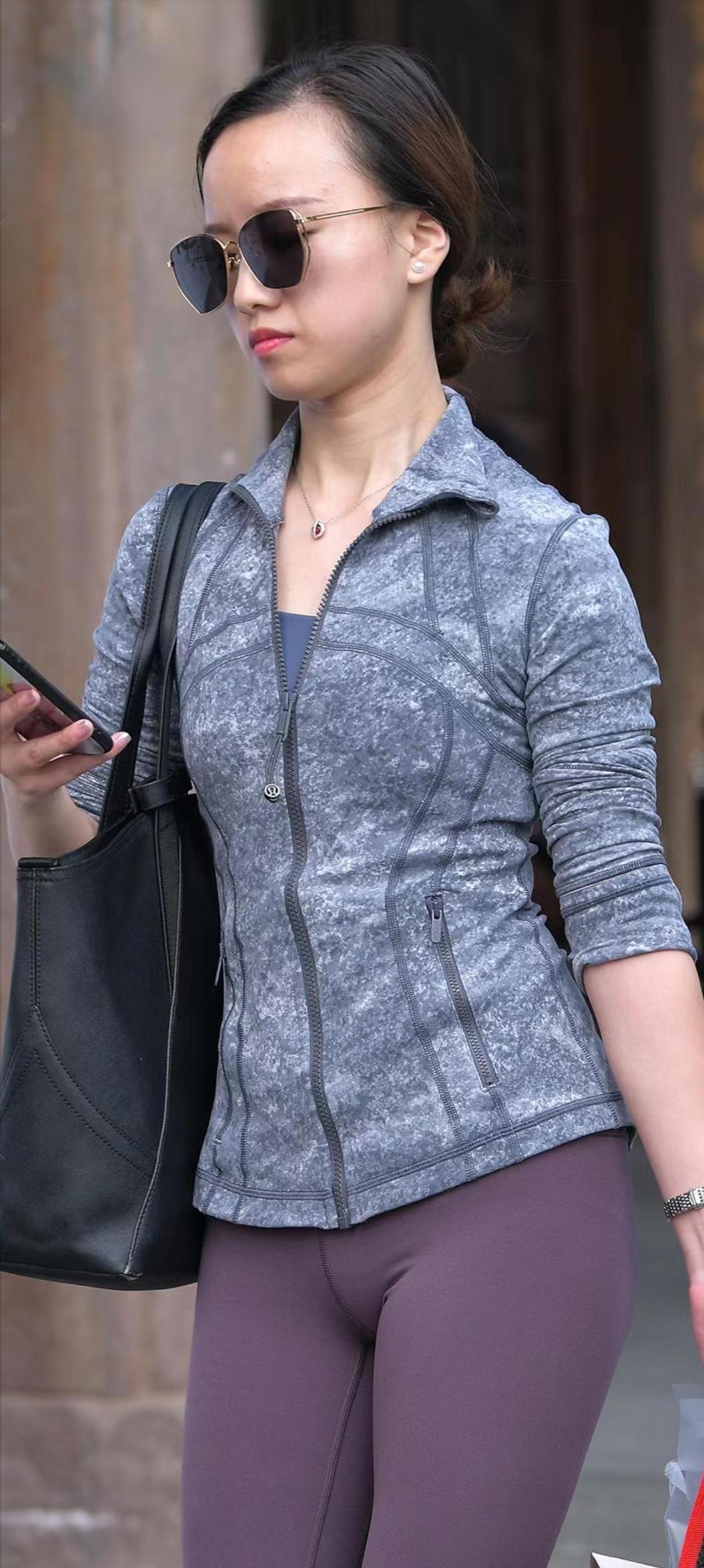 今天出门买了点东西,顺手拍了这张照片,感觉紫色紧身裤和灰色上衣还挺搭的,你们觉得呢?