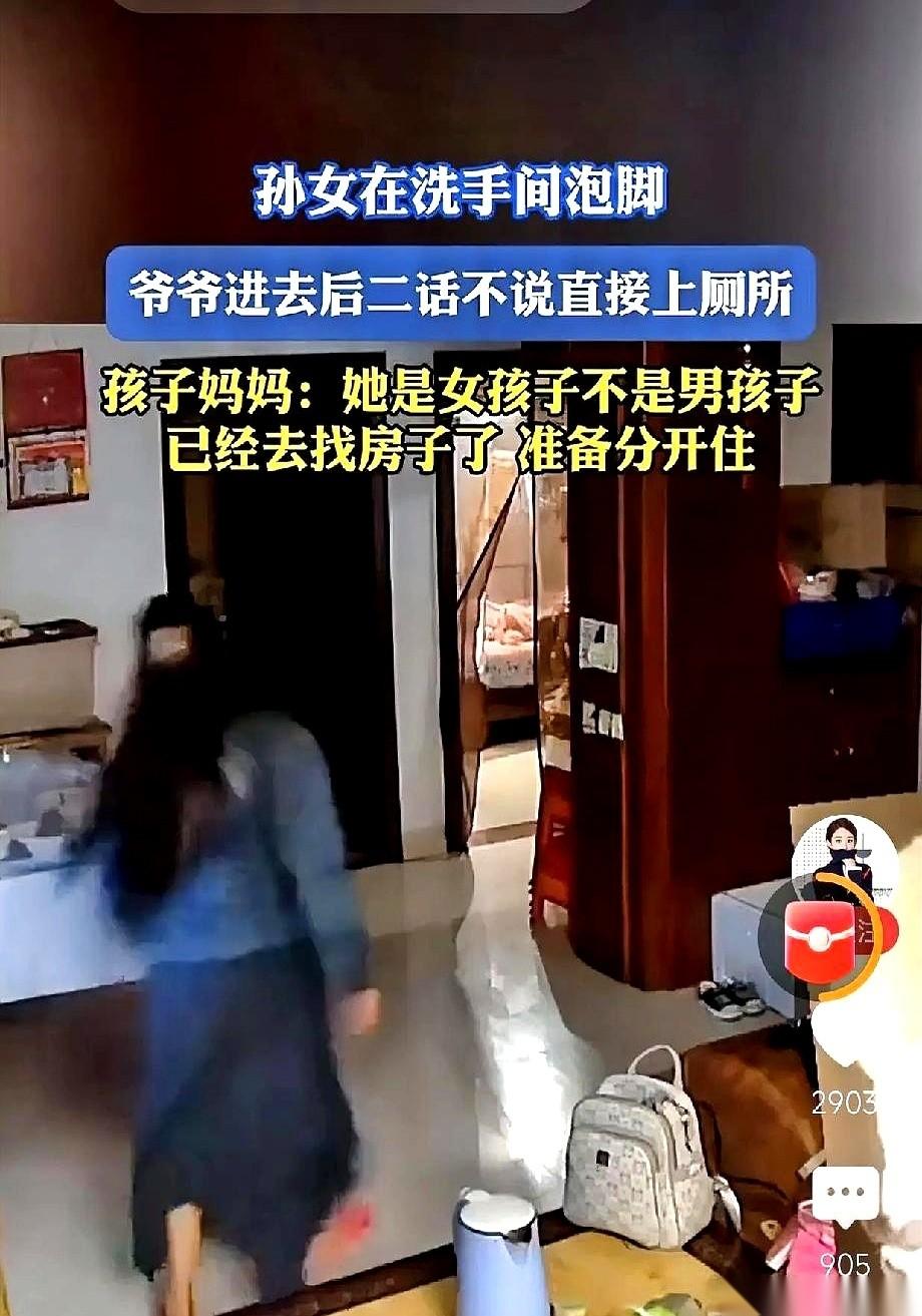 一个当爷爷的,不止一次,推开了孙女正在用的卫生间门。 看到这儿,先别急着说什么“家里就一个厕所”,也别提“老人尿急憋不住”。 我跟你说,这事儿压根就不是厕所的事儿。 这是一个小女孩的“界限感”第一次被自己最亲的人,漫不经心地踩得稀碎。 很多人,尤其是老一辈,脑子里缺根弦,叫“隐私”。他们觉得,都是自家人,你是我孙女,我看着你长大的,有什么不能看的? 这恰恰是最要命的。 今天他能推门进来,明天呢?后天呢?这种“无所谓”的态度,就是在告诉这个小女孩:你的感受不重要,你的身体不属于你,你的空间可以被随时侵犯。 当妈的为什么会急眼? 废话,母兽护崽的警报早就拉满了!这不是矫情,这是本能。如果连她都不把这当回事,那这个家,就没人能保护这孩子了。 一个厕所是客观困难,但在推门前敲一下、问一句,很难吗? 让孩子在客厅泡脚是解决办法,但问题的根源解决了吗? 根源在于,我们很多人,根本不懂得尊重一个“人”,哪怕她只是个孩子。 别再讨论谁对谁错了,也别再找什么客观理由了。 在这种事情上,没有灰色地带。保护孩子最基本的尊严和安全感,是所有成年人刻在骨子里的责任。 家,应该是建立安全感的第一个堡垒,而不是让它决堤的第一个蚁穴。