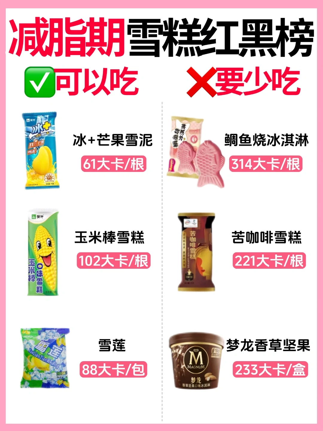 🔥减脂期雪糕红黑榜㊙️可以吃🆚少吃!附热量