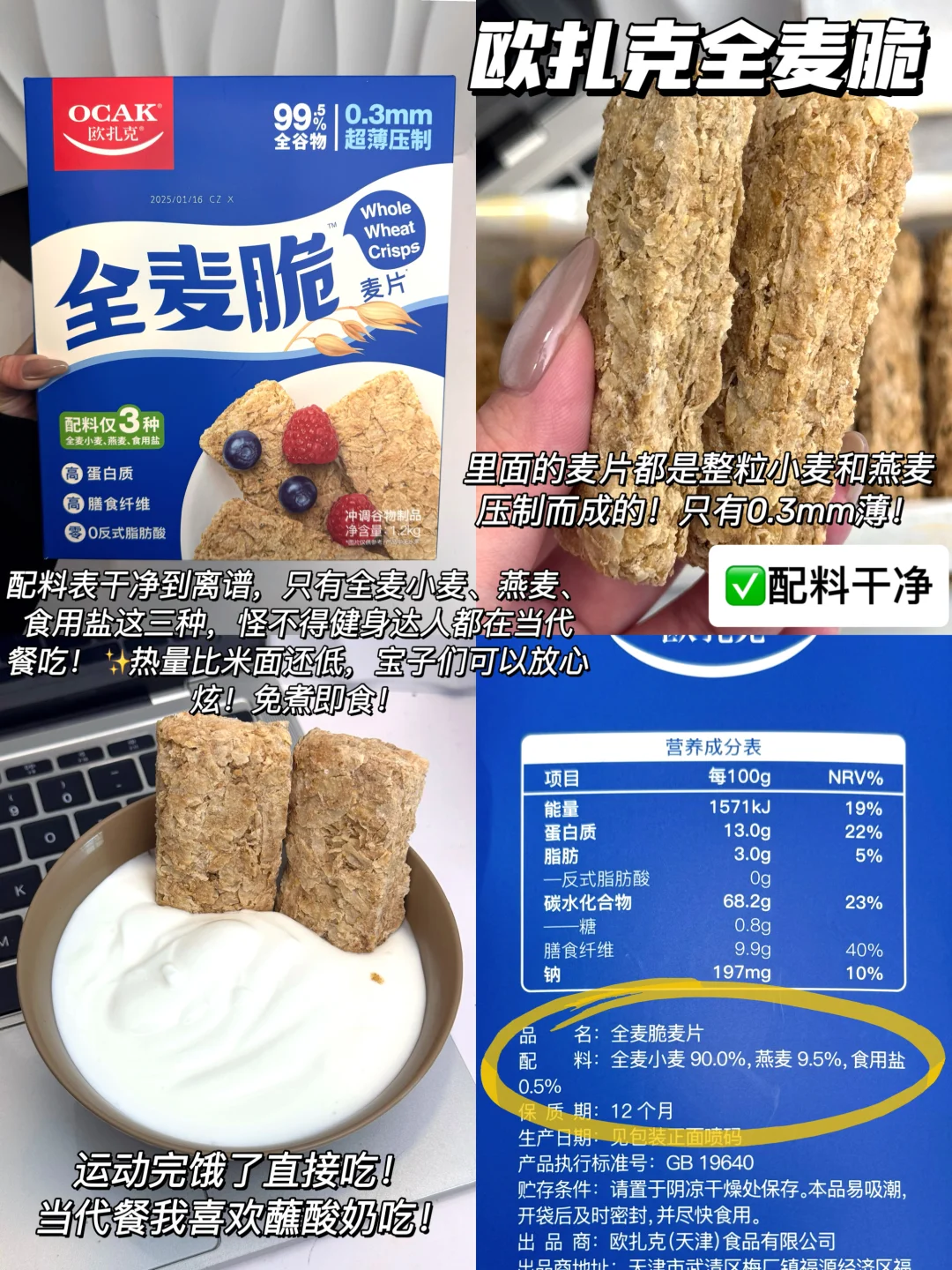 1️⃣欧扎克全麦脆(0添加糖)