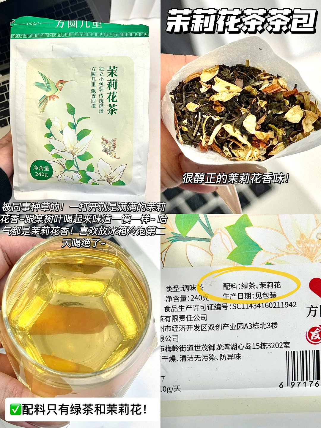被同事种草的!一打开就是满满的茉莉花香~跟某树叶喝起来味道一模一样~ 哈气都是茉莉花香!喜欢放冰箱冷泡第二天喝绝了~