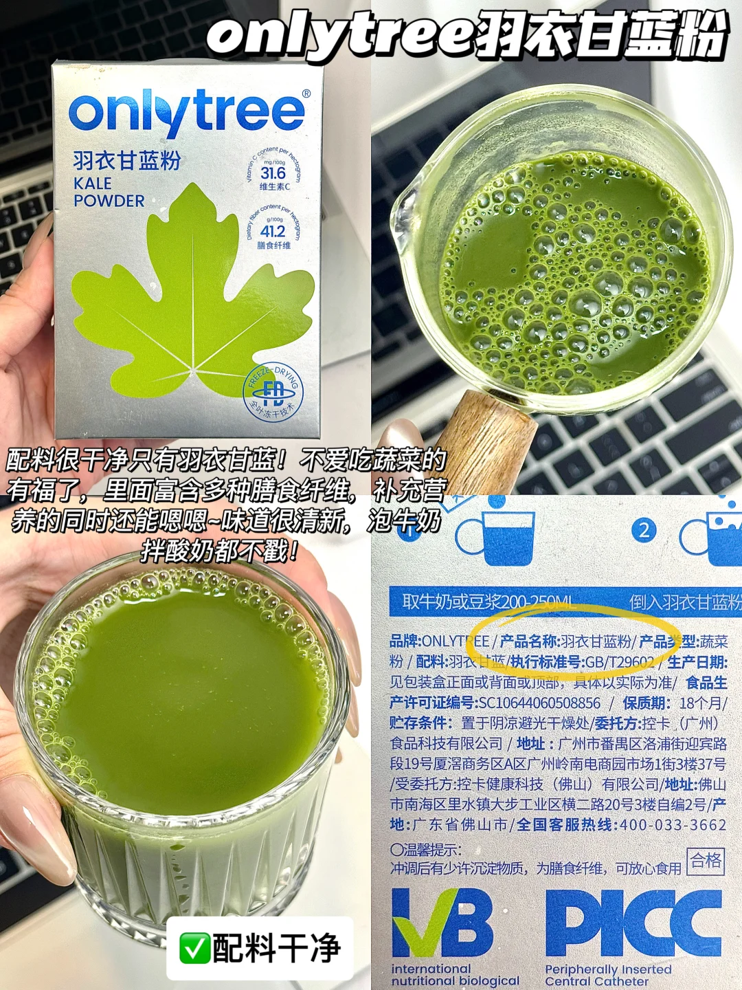 配料很干净只有羽衣甘蓝!不爱吃蔬菜的有福了,里面富含多种膳食纤维,补充营养的同时还能嗯嗯~味道很清新,泡牛奶拌酸奶都不戳!