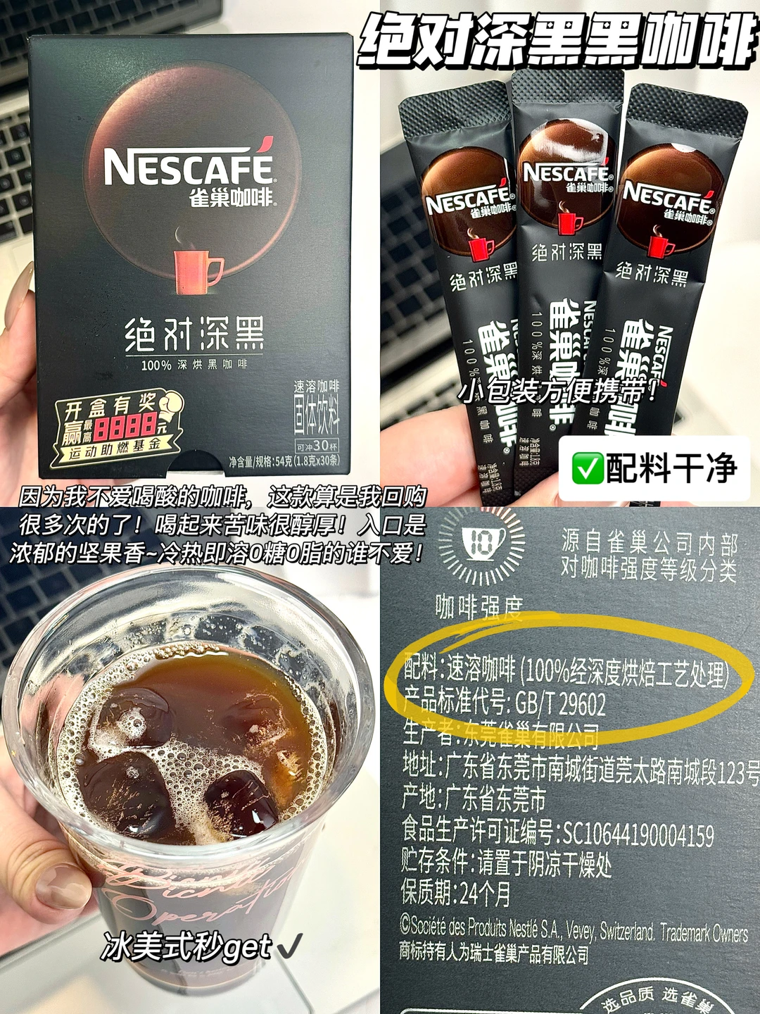 因为我不爱喝酸的咖啡,这款算是我回购很多次的了!喝起来苦味很醇厚!入口是浓郁的坚果香~冷热即溶0糖0脂的谁不爱!!