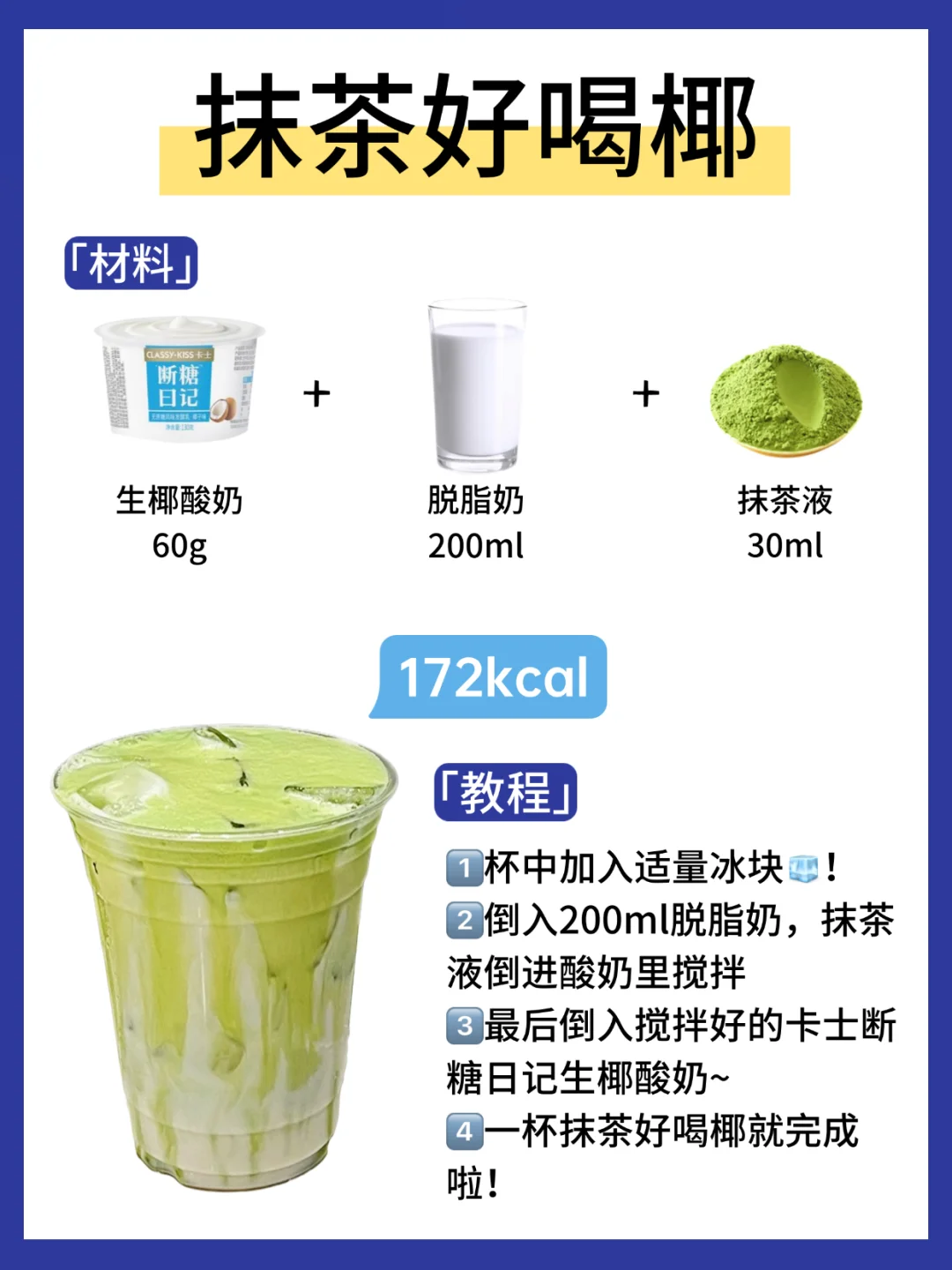 🥥抹茶好喝椰:生椰酸奶+抹茶液+脱脂奶