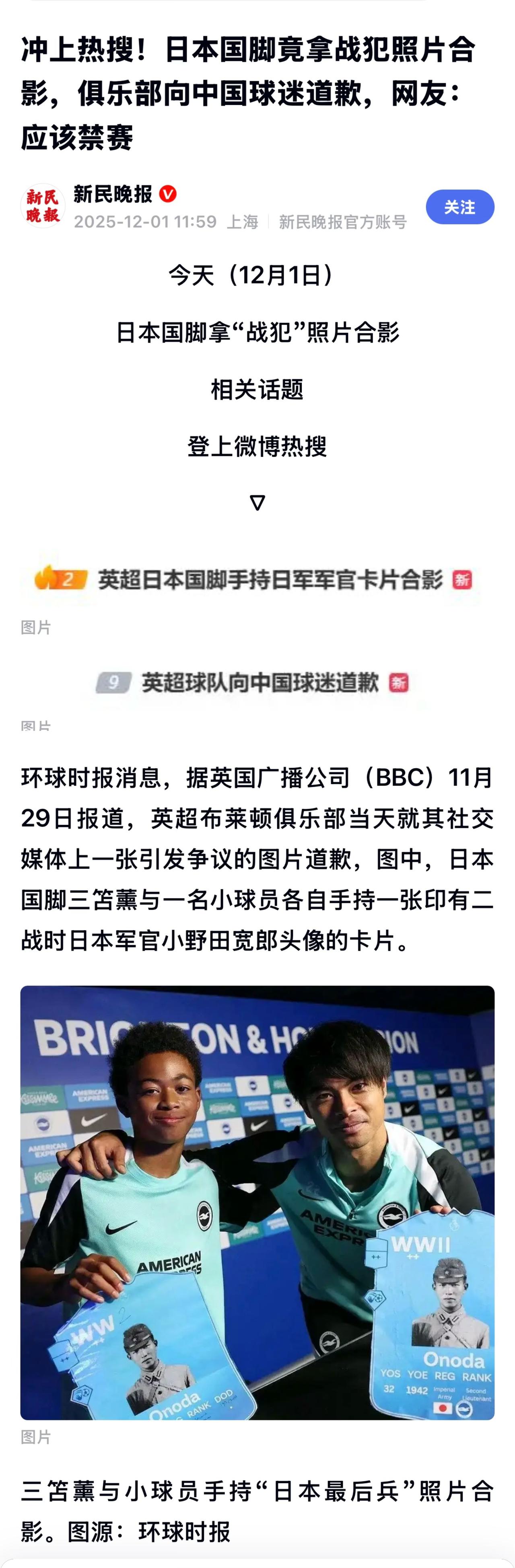 “居然有英超球队支持法西斯分子”,这是《环球时报》一篇报道下点赞最多的评论。 还有人呼吁布莱顿球会终止与三笘薰的合同。