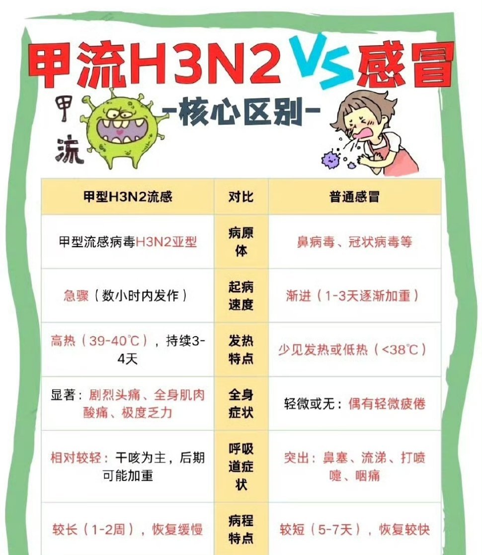 甲型H3N2流行 症状前24小时排毒H3N2“症状前排毒”虽让传播更隐蔽,但并非无计可施。它的传播依赖接触与密闭环境,日常防护就能有效阻断。勤用流动水洗手20秒以上,避免用手摸口鼻眼;人群密集处规范戴口罩,居家每天通风两次,这些简单动作就能降低感染风险。若不慎感染,72小时内及时用抗病毒药物,可大幅减少重症可能。不必因“隐形传播”恐慌,只要摸清病毒规律,做好“疫苗+防护+早干预”,就能平稳度过流感季。
