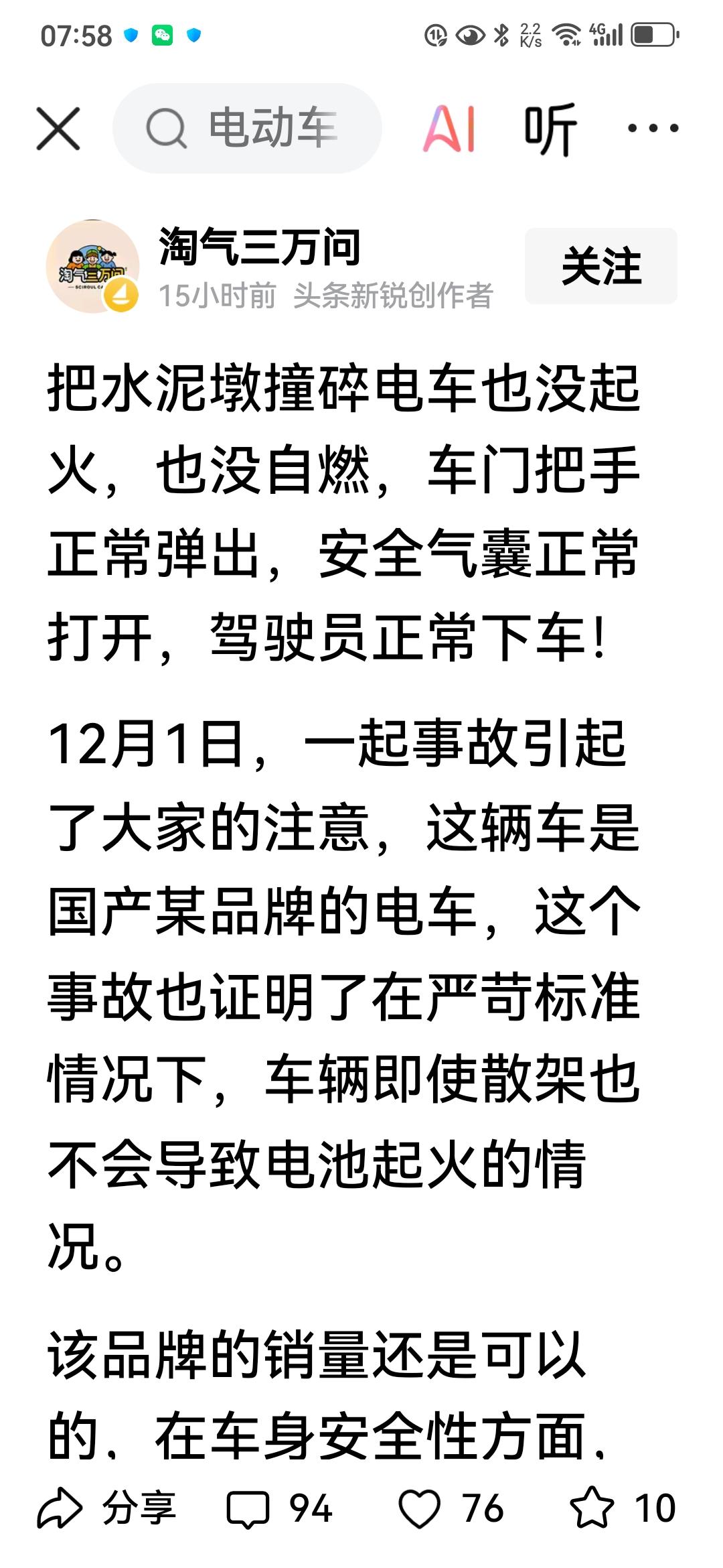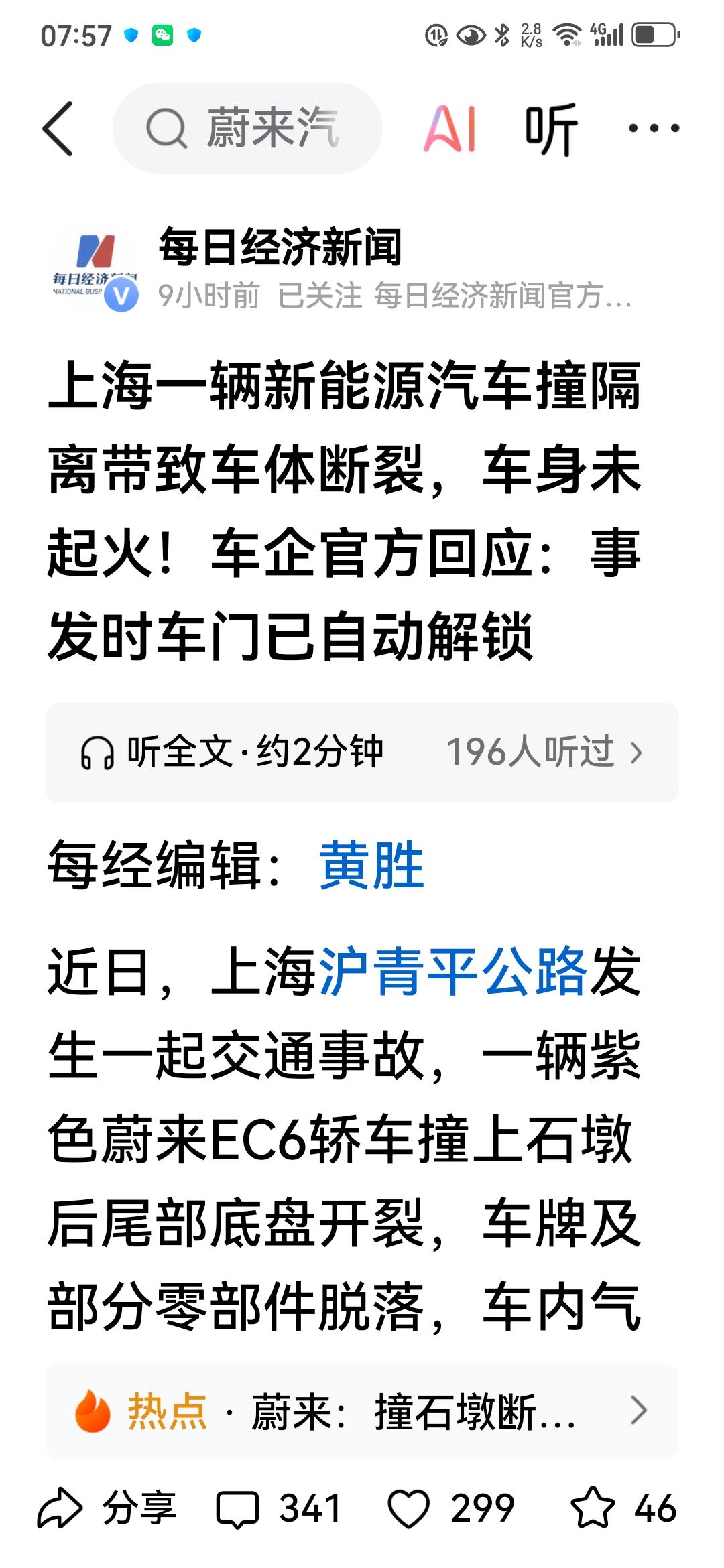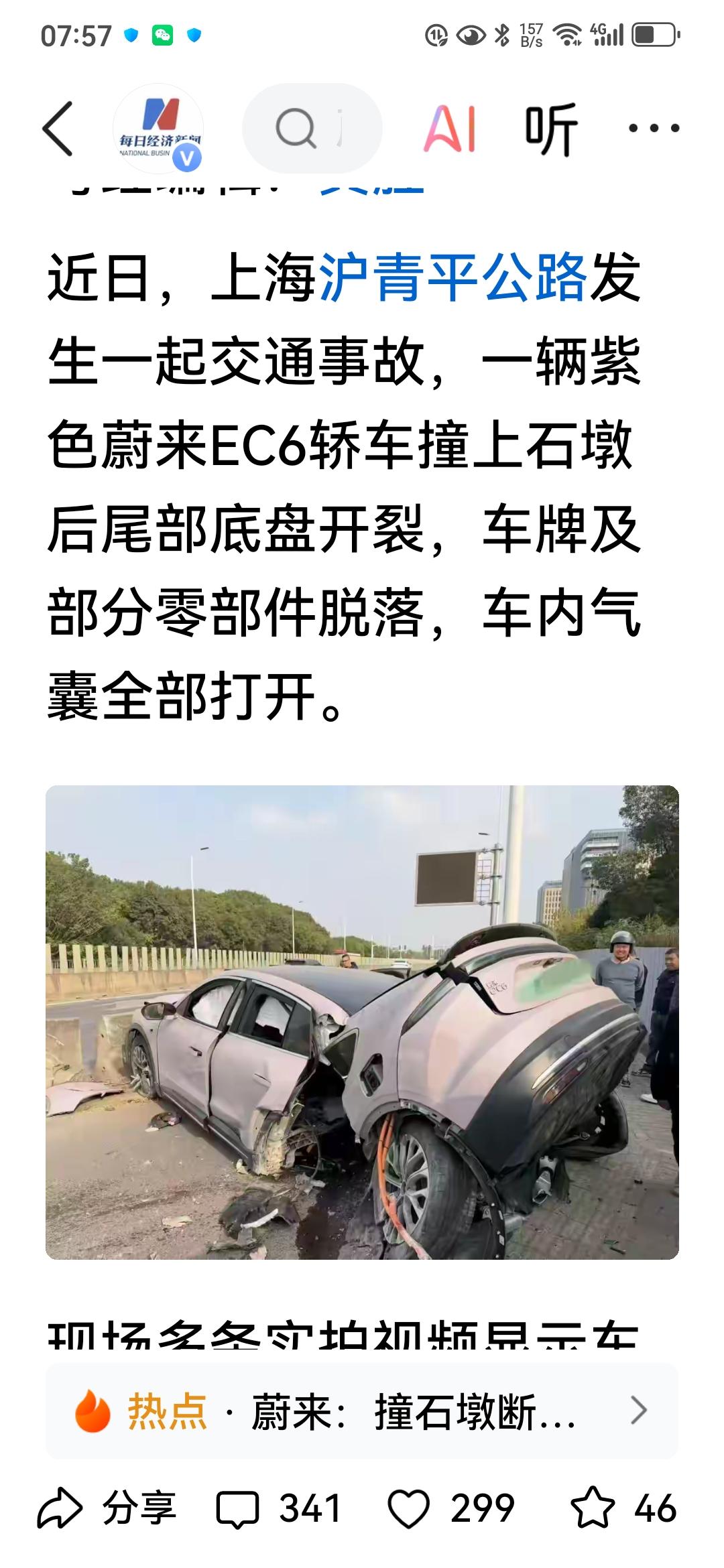 只强调没着火和车门也能打开了,忘了整车两半了!看这图片,这车都成了几乎两个部分,是说明在撞击下,这车的质量是好还是不好呢?
