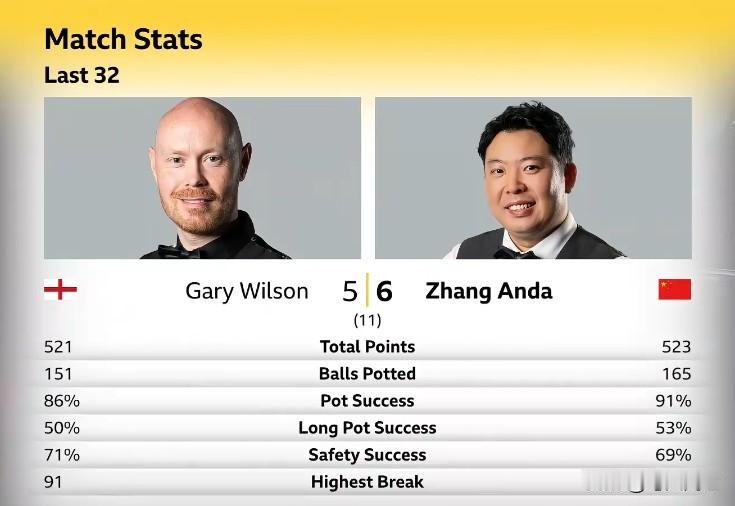 “中国日”完美收官!张安达力挽狂澜挺进16强,丁主任、赵公子如愿胜出。 2025斯诺克英锦赛,加里•威尔逊vs张安达的1/16决赛,刚结束了十一局的较量,3:5落后下的达仔,绝境中展示出其超强的大心脏、抽丝剥茧连下三城!6:5逆转绝杀威尔逊,为“中国日”划上了完美的句号!较早前结束的,丁俊晖vs徐思、赵心童vs龙泽煌两场打比战,赛果一预所料,也是如绝大多数球迷所愿,赵心童依然进攻手感火热、6:1击败龙泽煌;丁俊晖6:4淘汰徐思,携手晋级16强。 丁俊晖、赵心童的胜出,既有与生俱来天赋加持,更有饱经风霜的磨砺。张安达的逆境翻盘,更是展示出我命由我不由天的自信自勉!暂且落败的龙泽煌、徐思,只是欠缺点运气,能踏上英锦赛的舞台,已是职业生涯中难能可贵的宝贵经,相信未来必定可期!